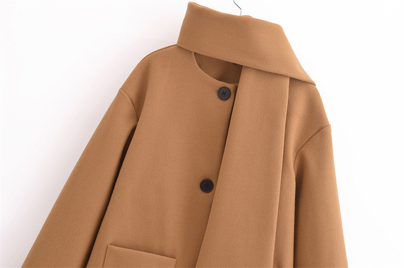 - European And American Style Women's New Elegant Mixed Scarf Round Neck Coat