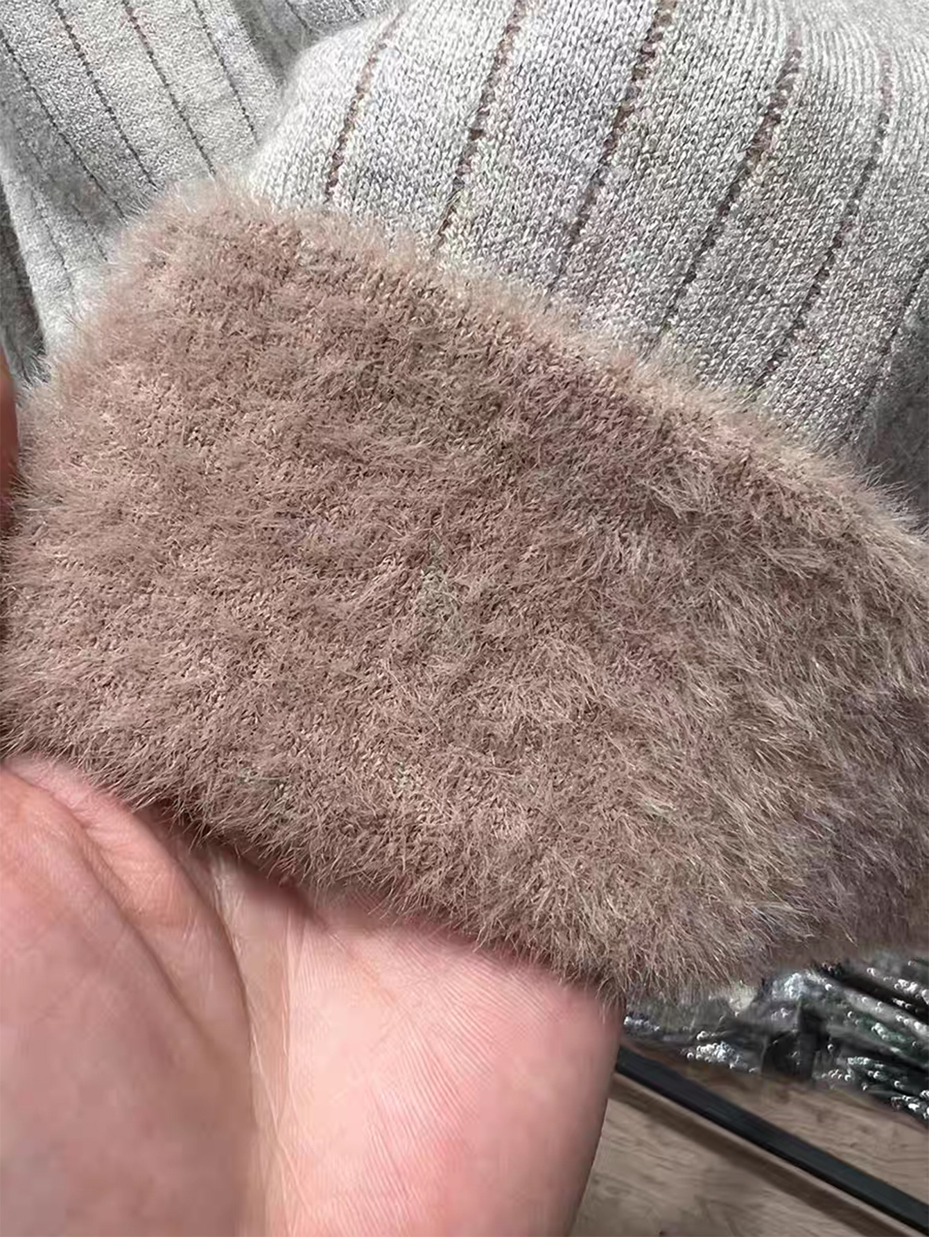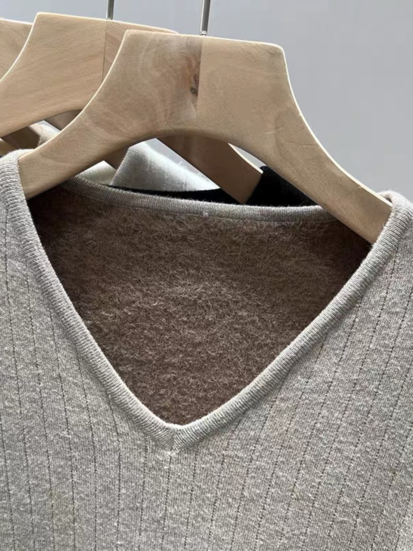 - Fluffy V-neck Long Sleeve T-shirt Sweater For Women