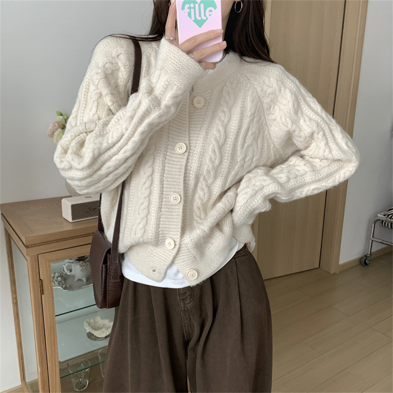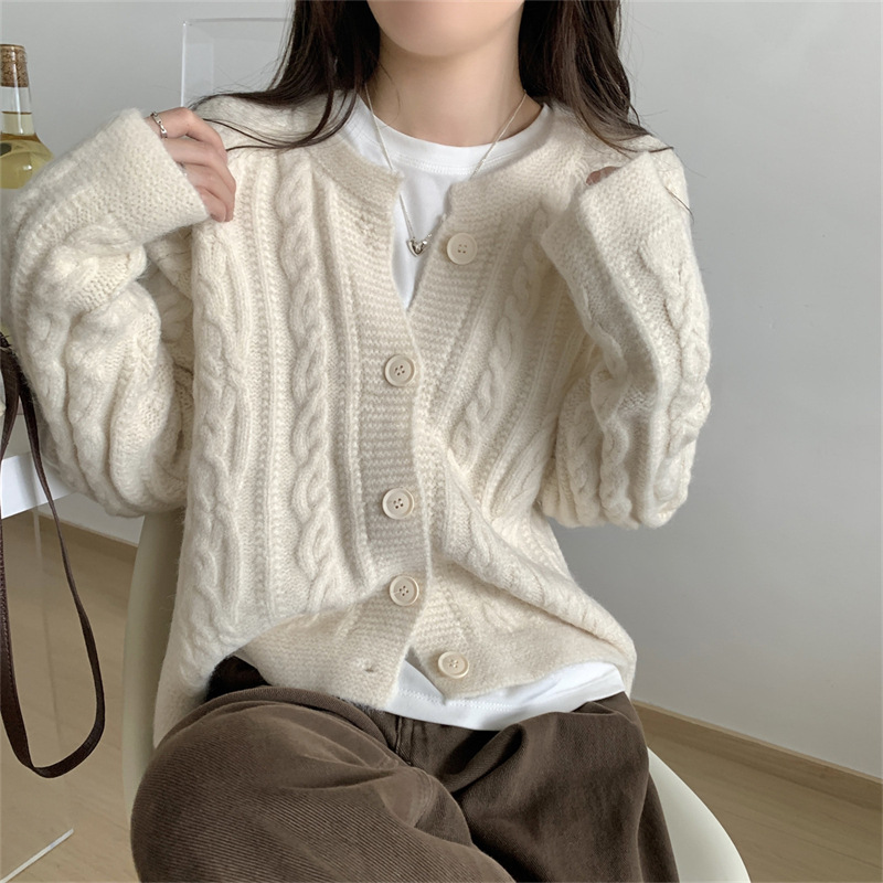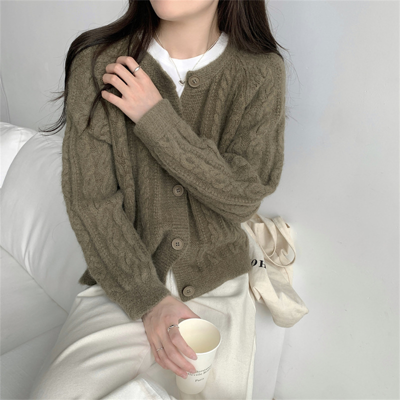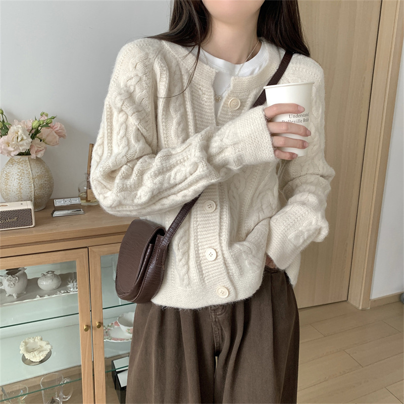 - Gentle Soft Twist Knit Cardigan Women Loose Short