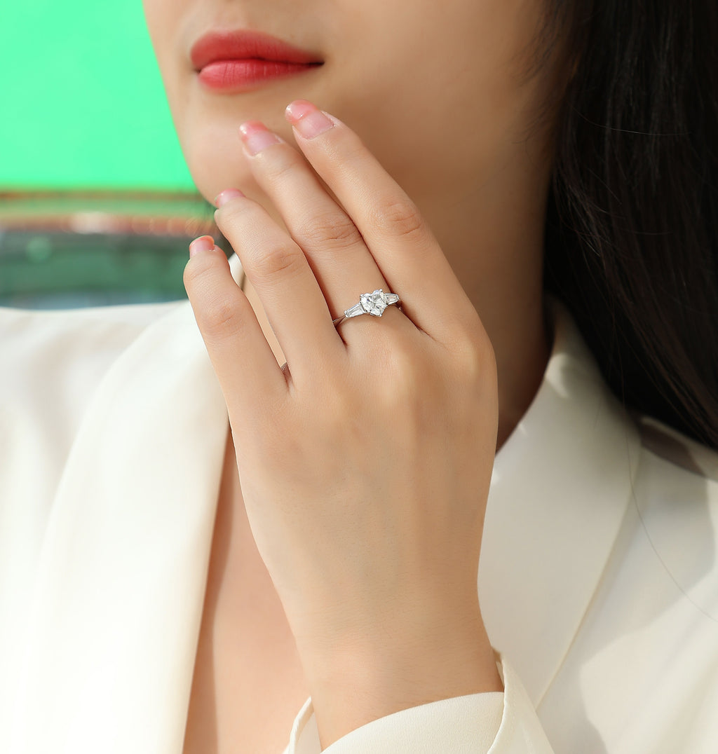 Love Comes From The Heart - A Wedding Ring Set With Top-quality Moissanite S925 Silver And Platinum-plated Diamond Can Be Tested With A Diamond Pen