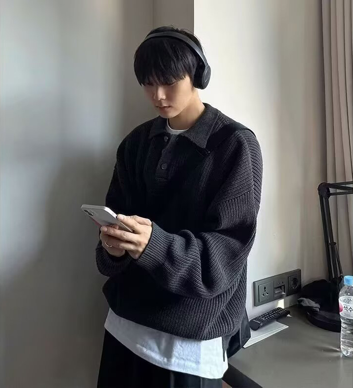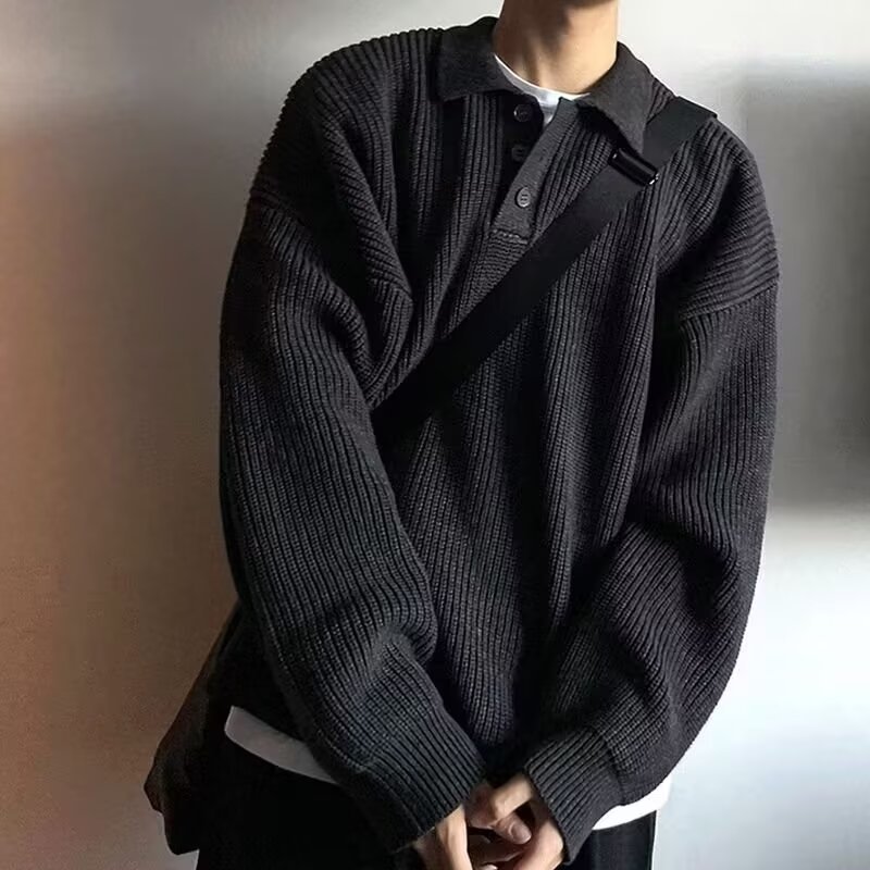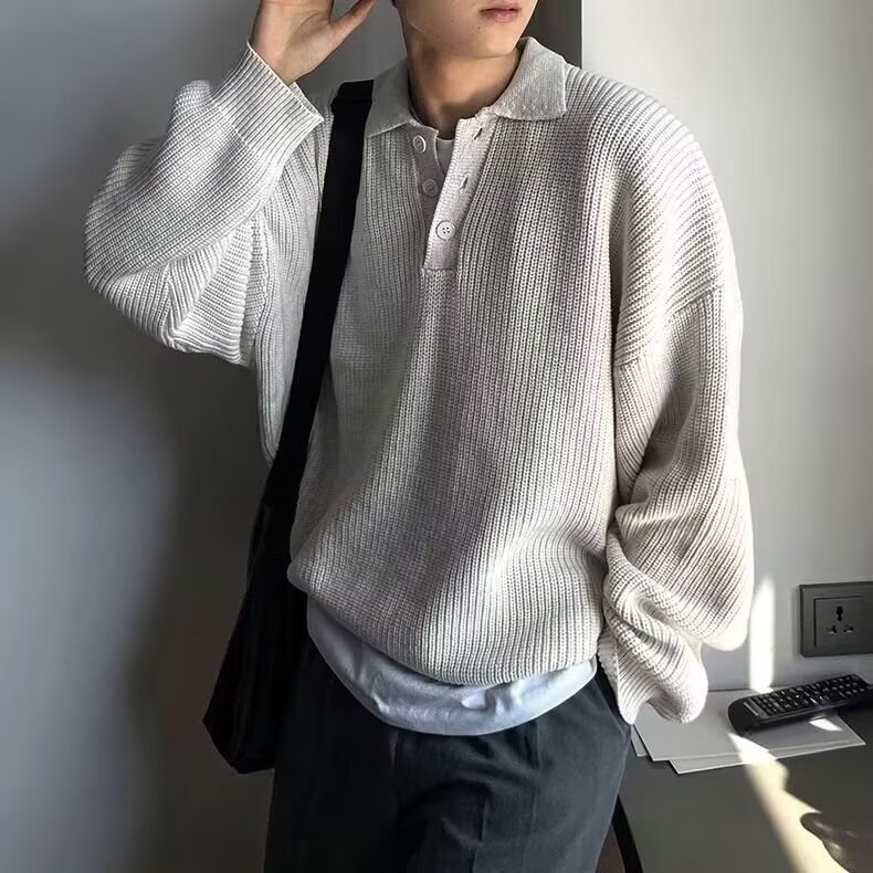 Men's Polo Shirt Turn-down Collar Long-sleeve Knit Sweater