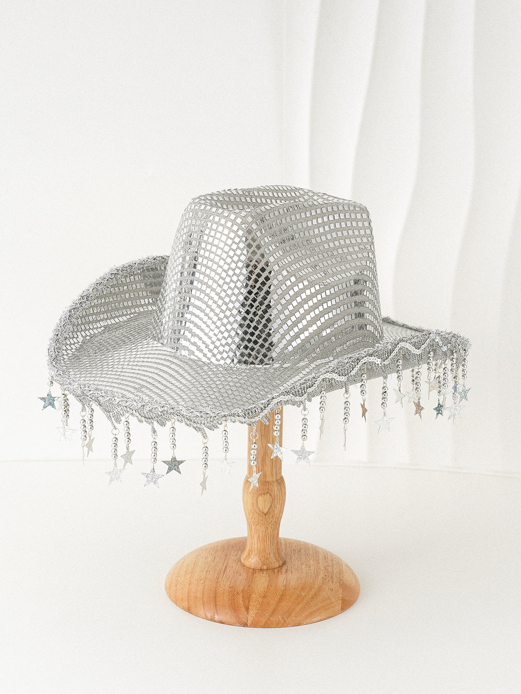 Western Cowboy Hat Sequined Tassel XINGX Design Floppy Hat