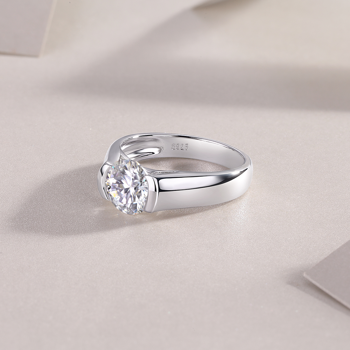 A Lifetime's Love - A Wedding Ring Set With Top-quality Moissanite S925, Silver And Platinum-plated. The Ring Can Be Tested With A Diamond Pen