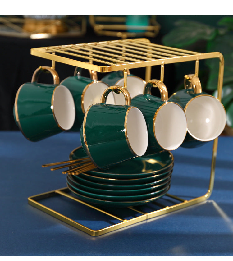Ceramic Cup With Spoon Dark Green Coffee Cup And Saucer