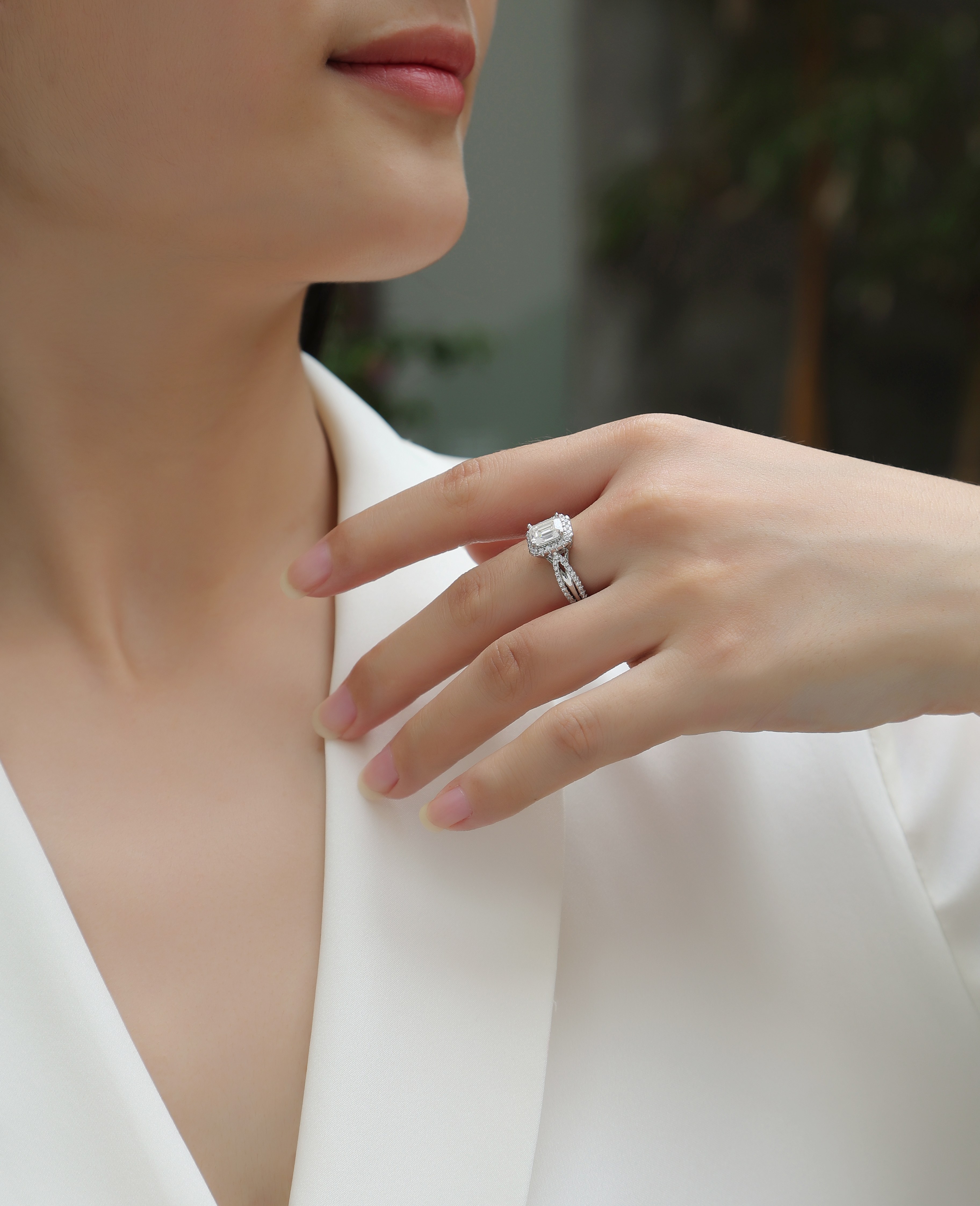 Daytime Dream - A Wedding Ring Set With Top-quality Moissanite S925 Silver And Platinum-plated Diamond. The Ring Can Be Inspected With A Diamond Pen