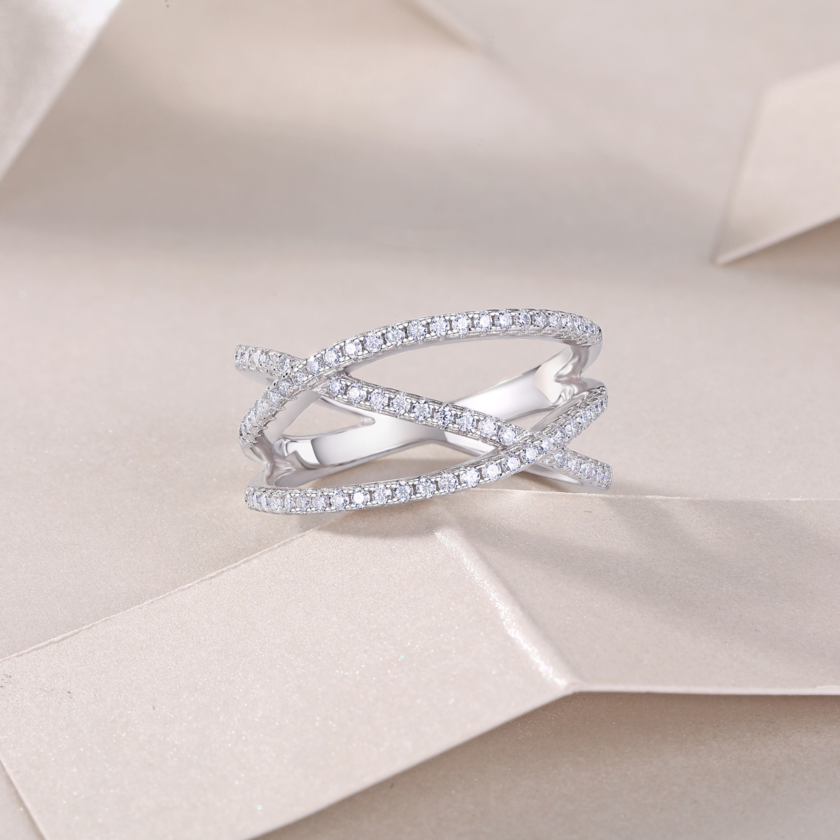 Fate Cross - A Wedding Ring Set With Top-quality Moissanite S925 Silver And Platinum-plated Diamond Can Be Tested With A Diamond Pen