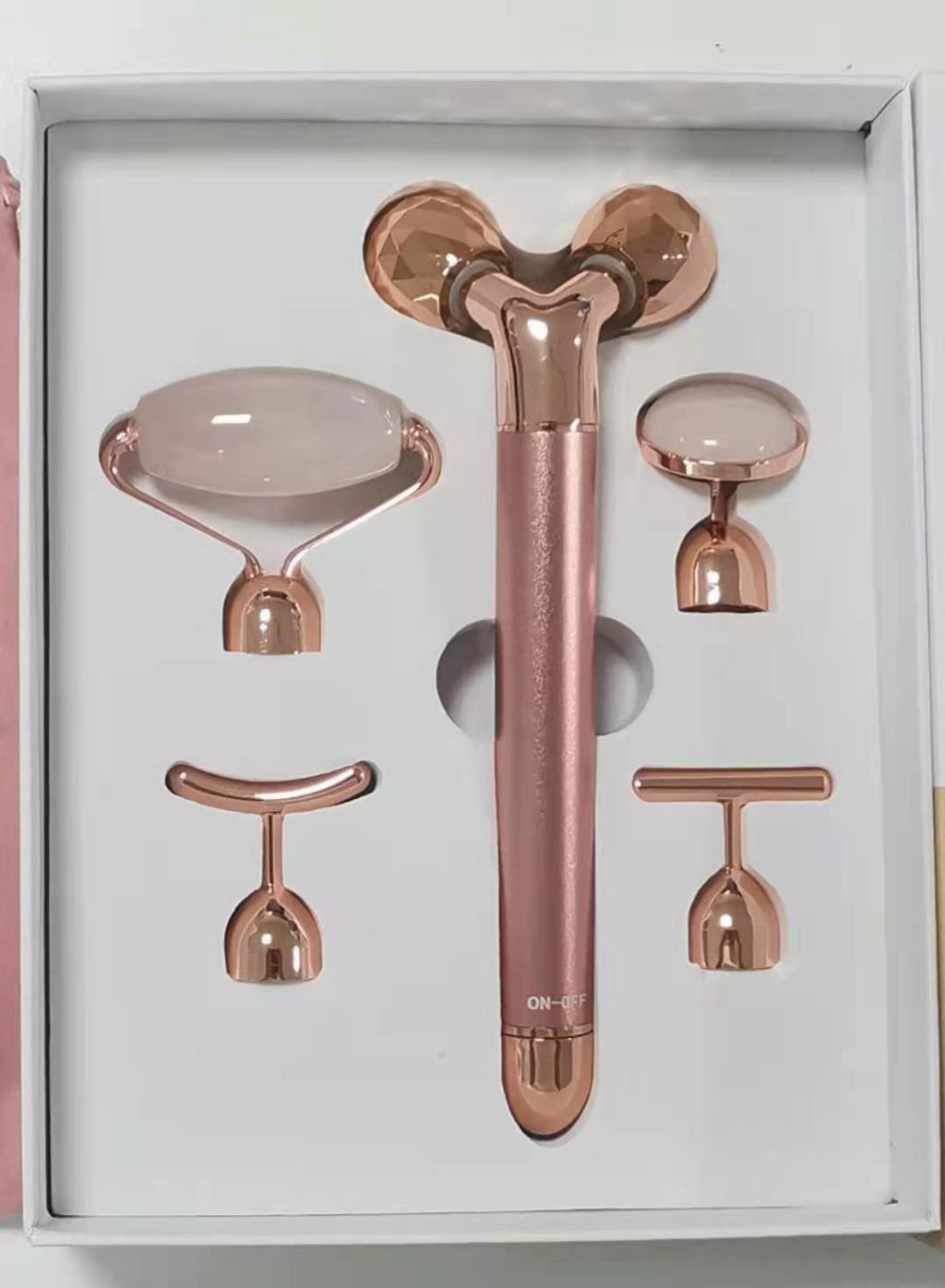 Instruction manual + pink flannel bag + color box + EV jade roller head + jade disc head + U-shaped beauty head + T-shaped beauty head *1