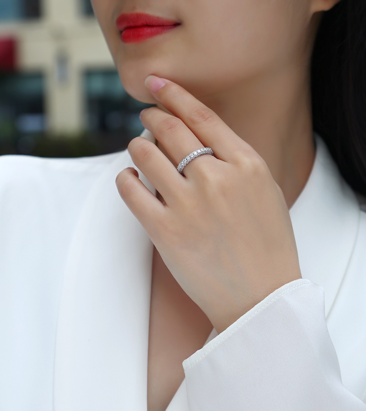 Pond Moonlight - A Wedding Ring Set With Top-quality Moissanite S925 Silver And Platinum-plated Diamond. The Ring Can Be Inspected With A Diamond Pen