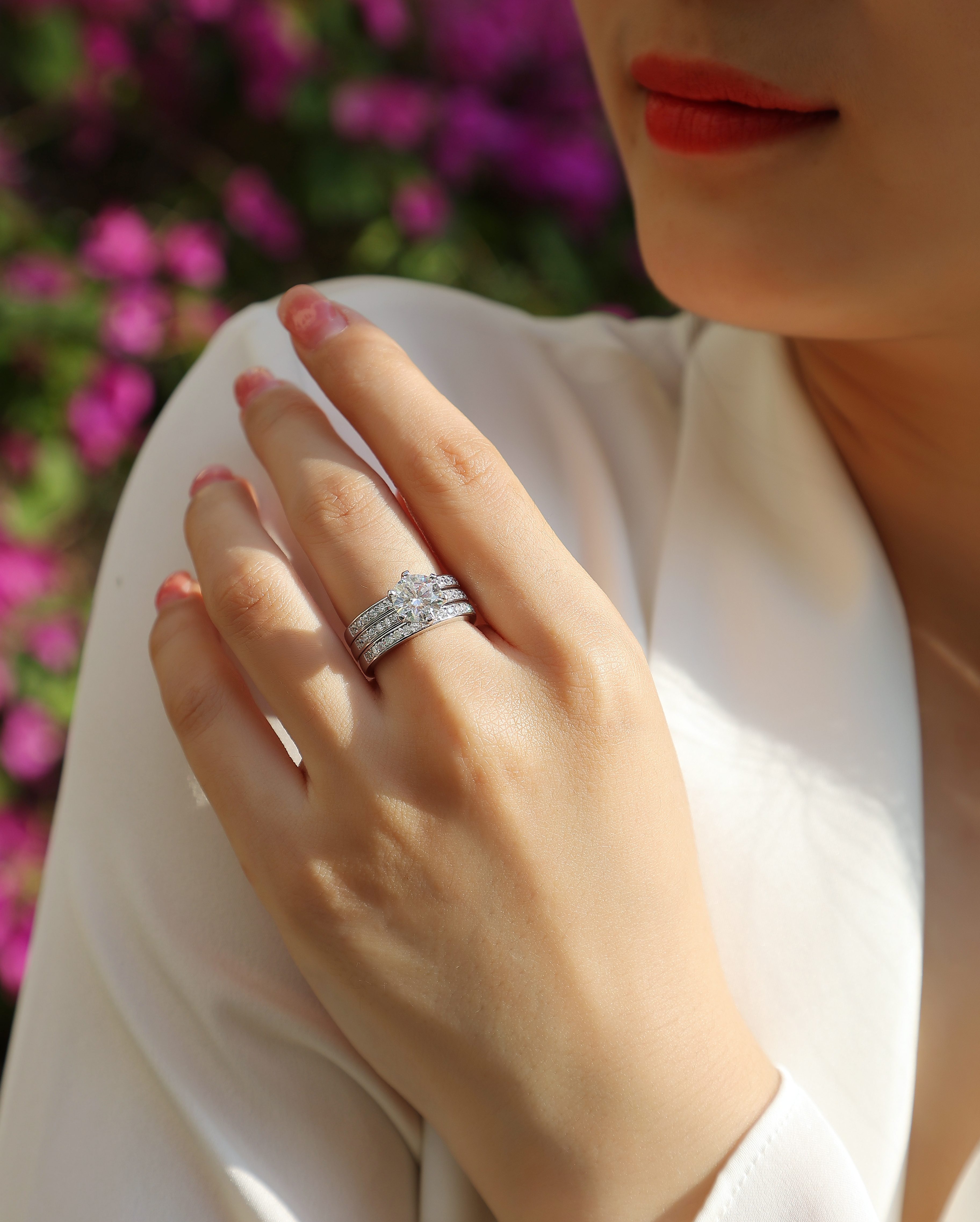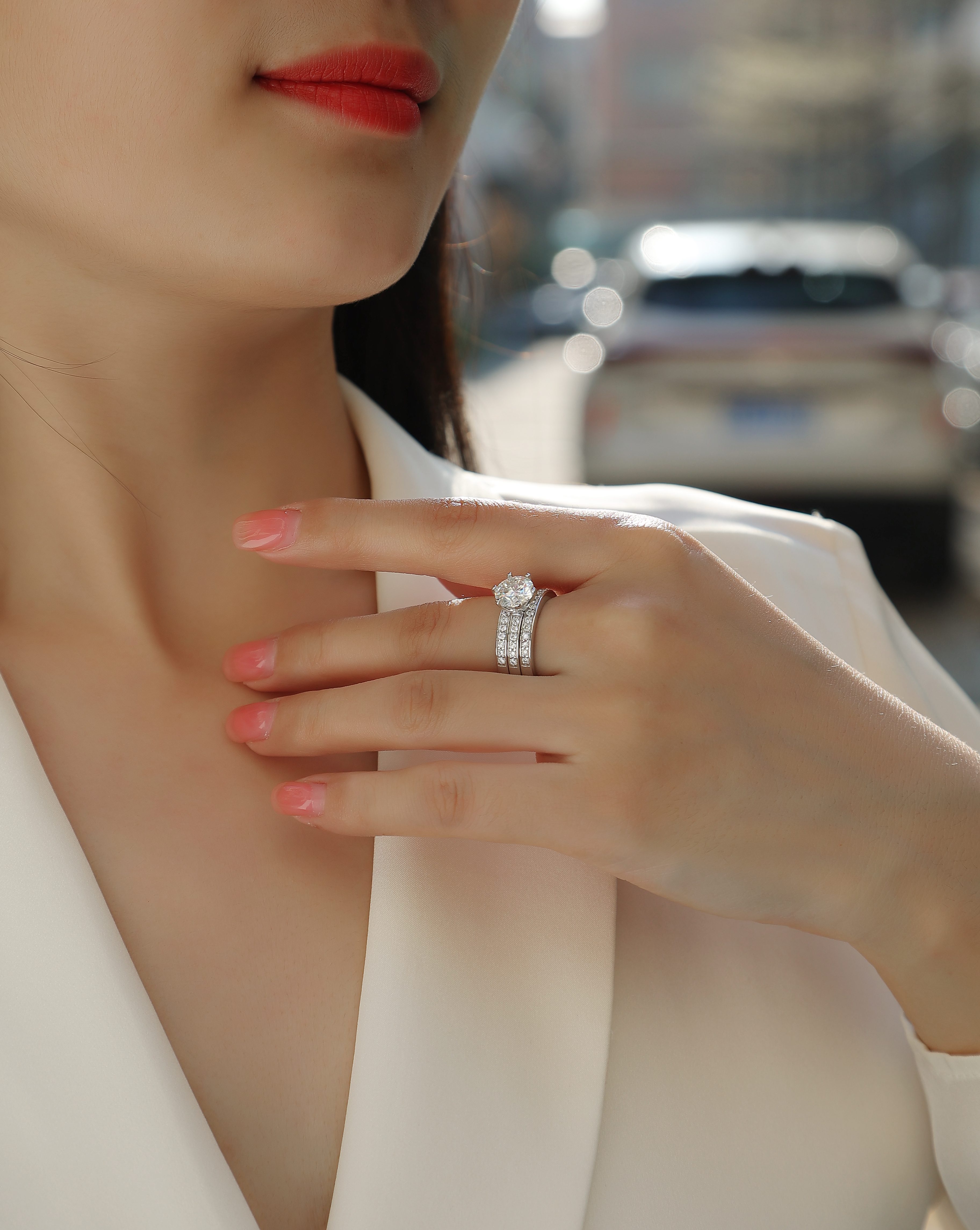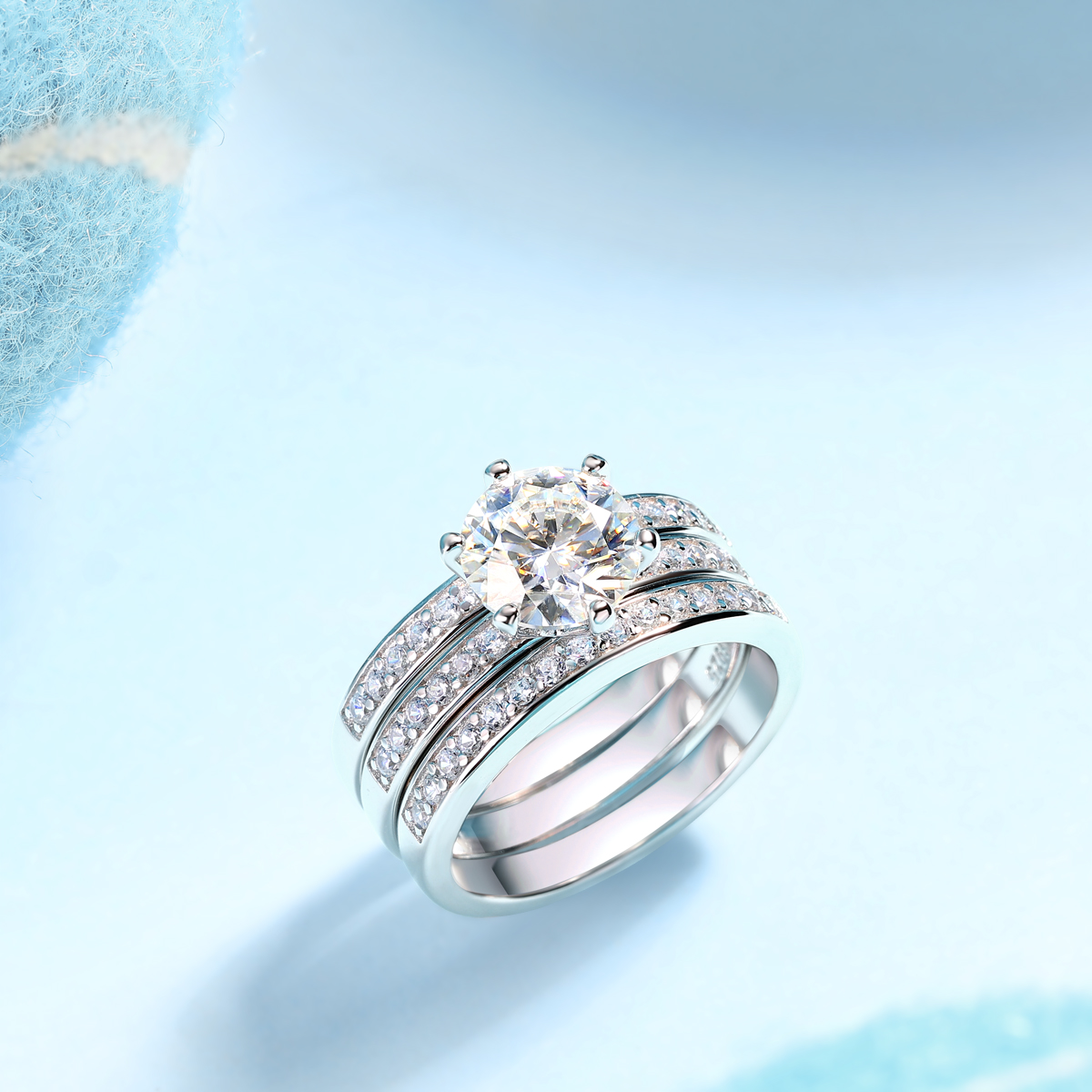 Surging - A Wedding Ring Set With 2-carat Top-quality Moissan S925 Silver And Platinum-plated Diamond Can Be Inspected With A Diamond Pen