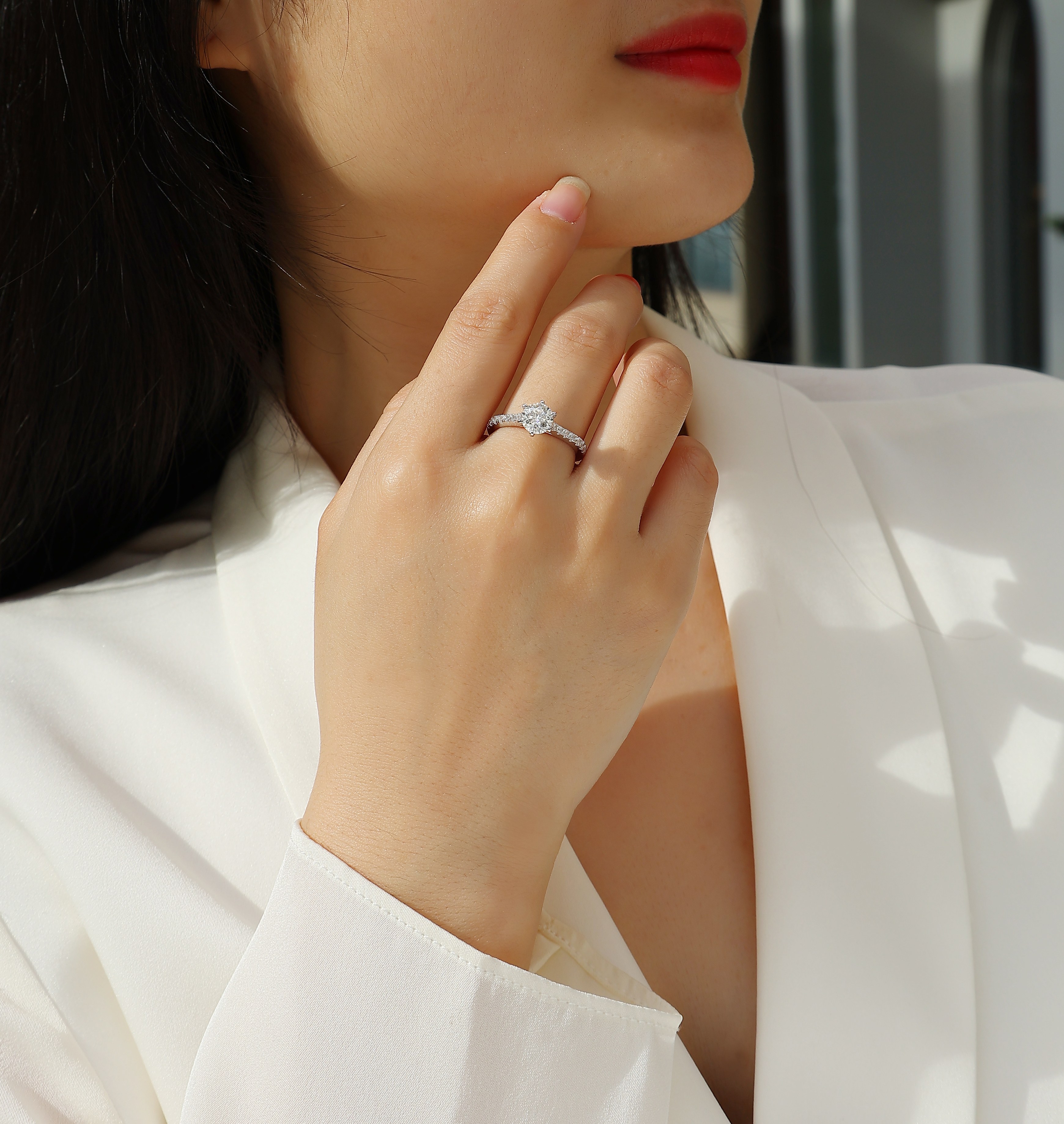Surrounded By Stars - A Wedding Ring Set With 1-carat Top-quality Moissanite S925 Silver And Platinum-plated Diamond. The Ring Can Be Inspected With A Diamond Pen