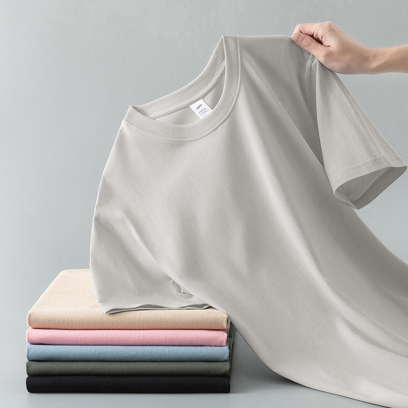 Summer Solid Color Coat Round Neck Bottoming Shirt Half-sleeve Pure Cotton T-shirt Men And Women Short Sleeve