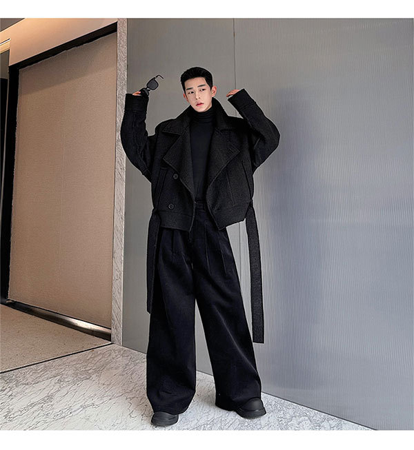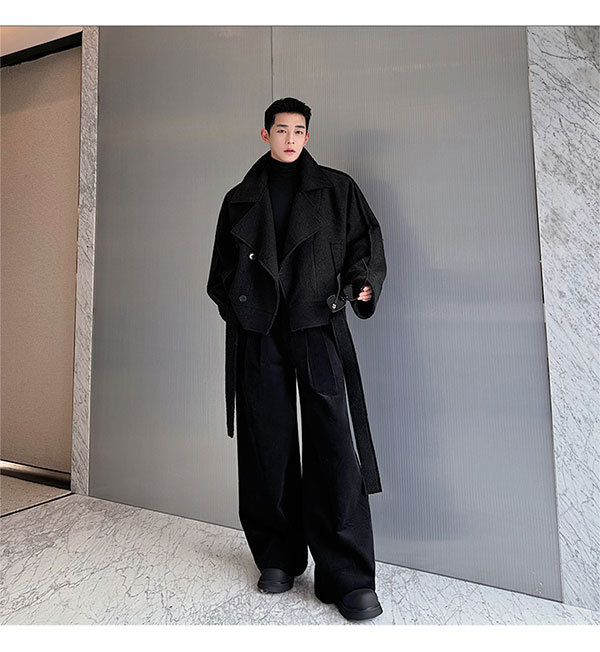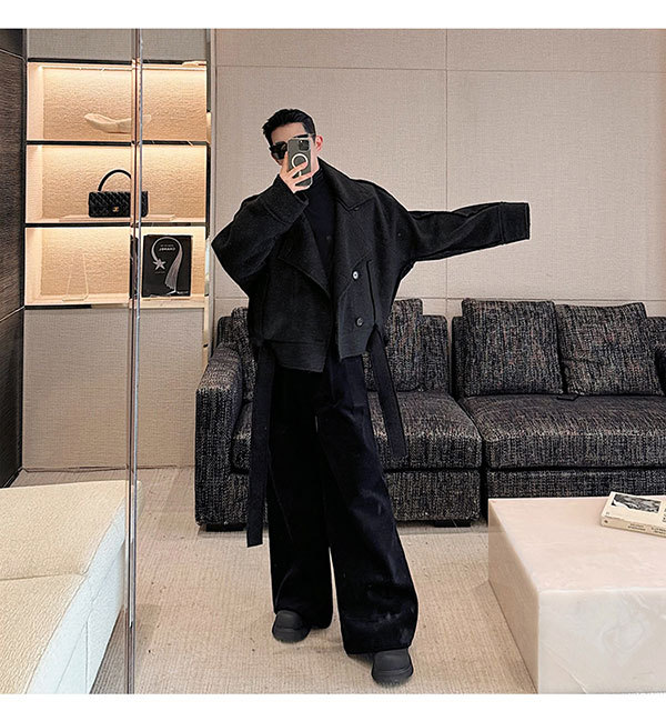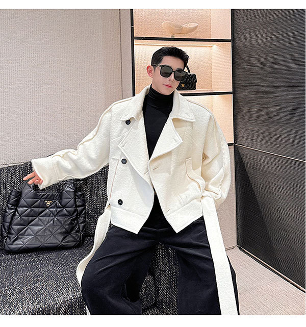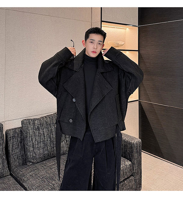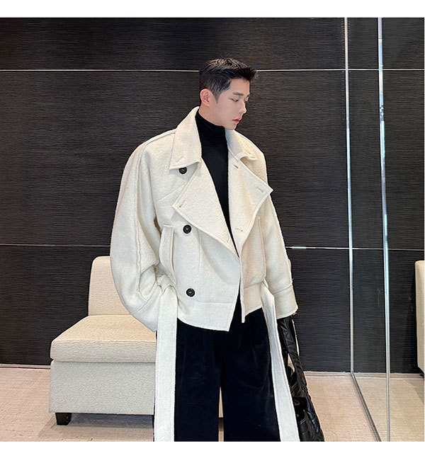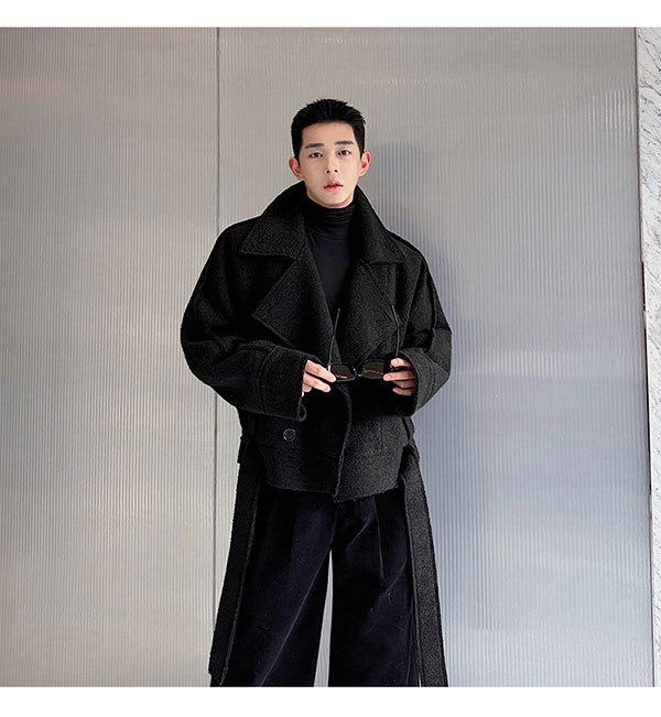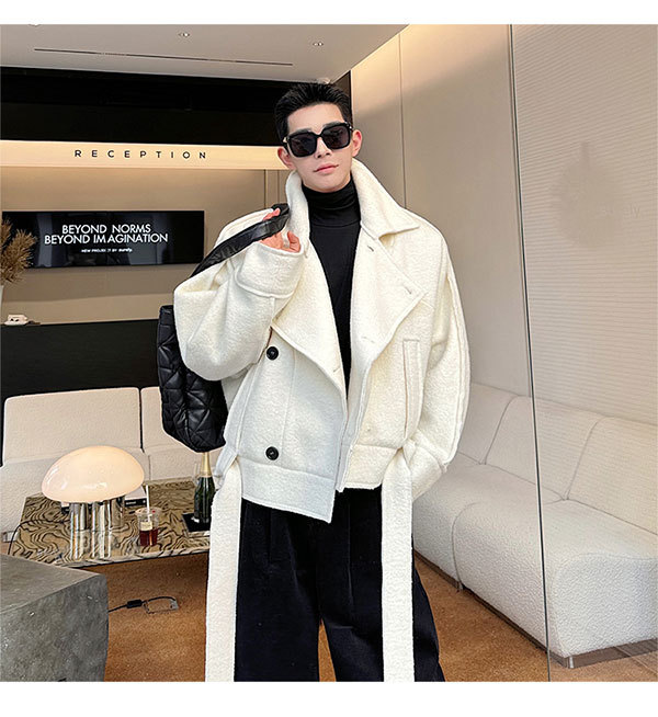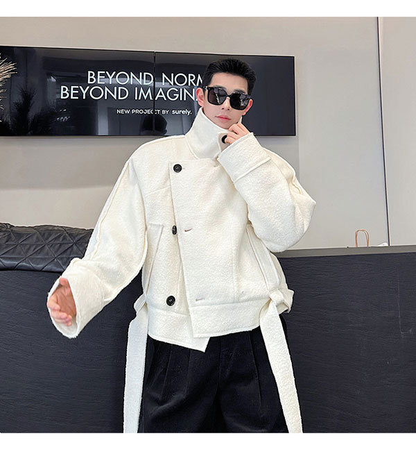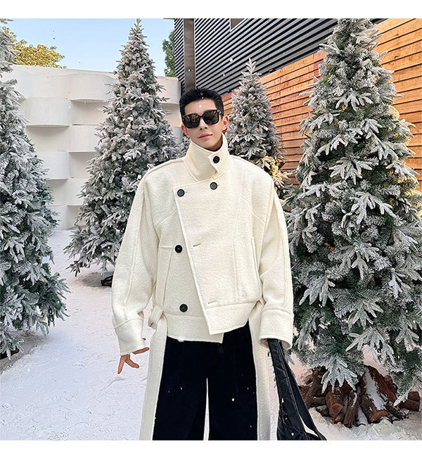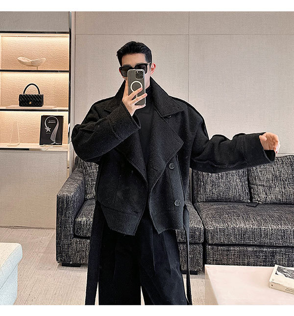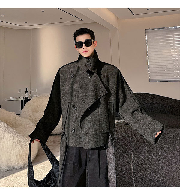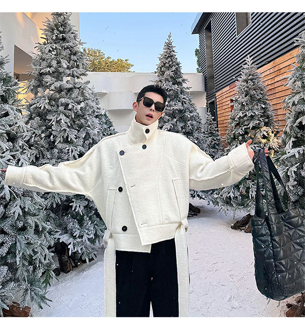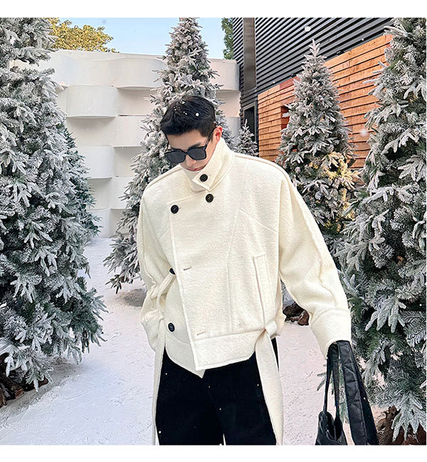 Autumn And Winter Men's Thickened Short Stand Collar Woolen Coat