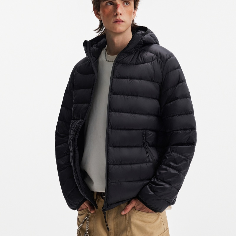Lightweight Ribbed Hooded Down Jacket For Men And Women, Warm In Winter
