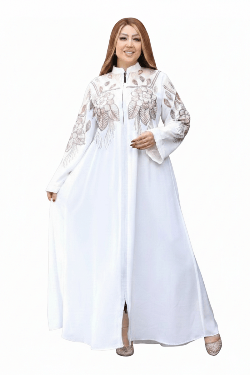 عباية مصنوعة من خامة حرير خفيفة تمنح إحساسًا بالراحة والنعومة مع انسيابية أنيقة في الحركة. تتميز بتطريز ناعم على الجزء العلوي والأكمام يضيف لمسة راقية وهادئة، مع قَصّة واسعة تناسب مختلف الأجسام وتوفر راحة طوال اليوم. تصميم عملي وأنيق يصلح للإطلالات اليومية الراقية والمناسبات البسيطة.