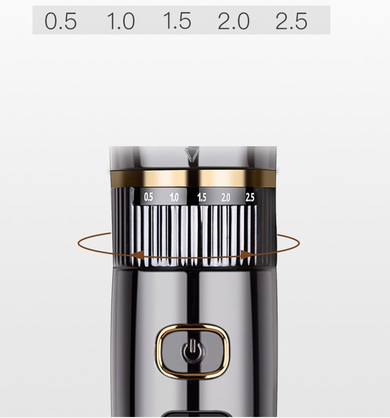 Five-level fine-tuning design (0.5mm, 1.0mm, 1.5mm, 2.0mm, 2.5mm) can accurately cut hair.