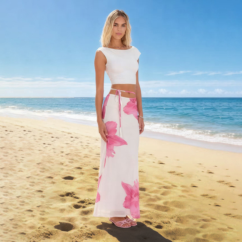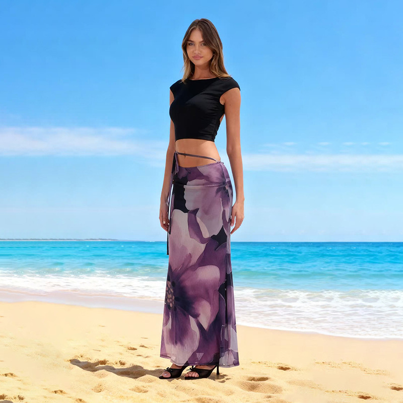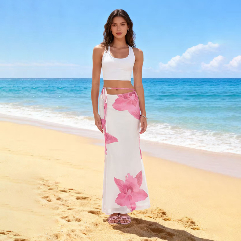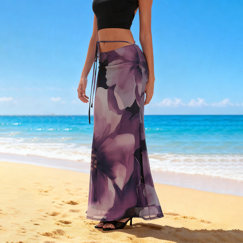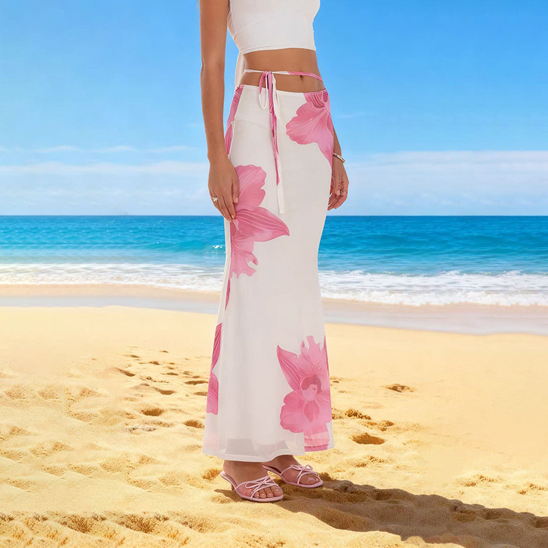 - Summer Women's Beach Vacation Double-layer Tie-draped Skirt