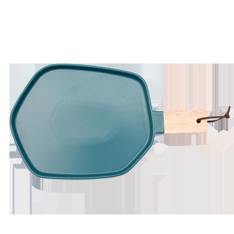 Nordic Creative Ceramic Western Food Plate With Wooden Handle