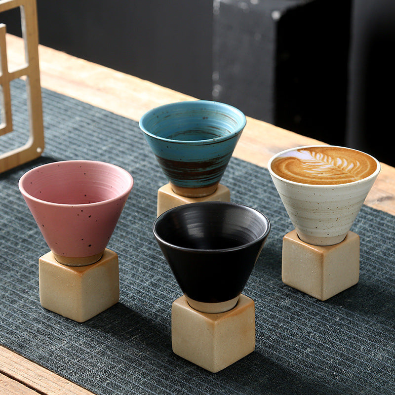 Stoneware Espresso Cup Creative With Base Vintage Ceramic