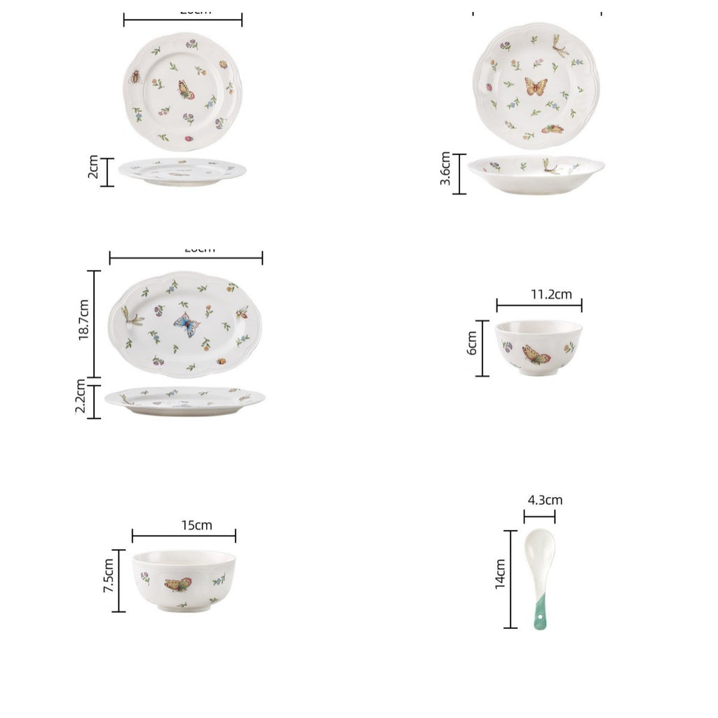 Vintage Dragonfly Butterfly Ceramic Tableware Set