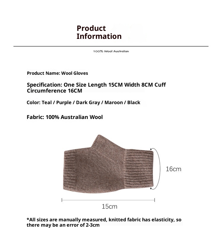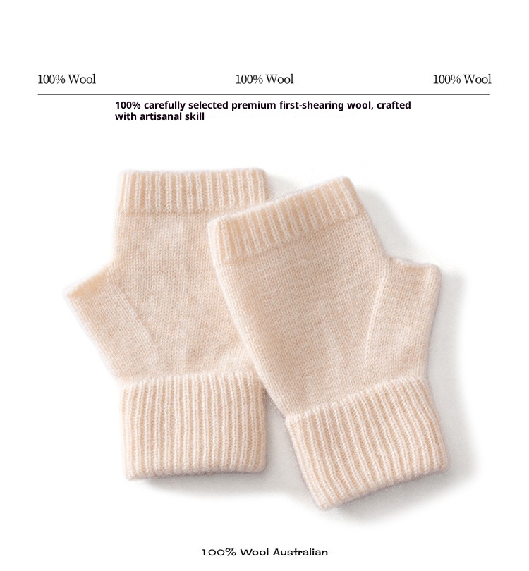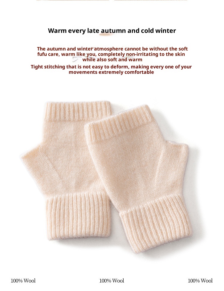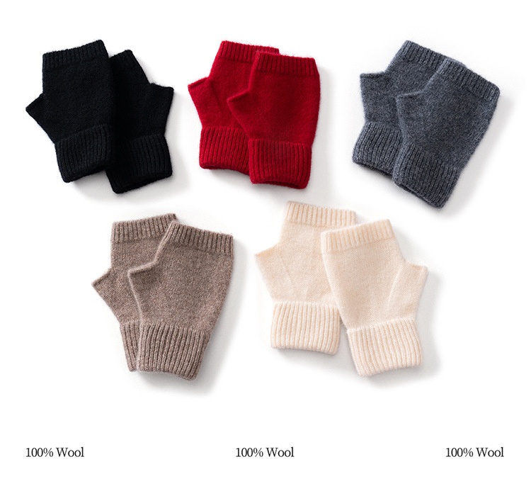 - Australia Wool Warm Knitted Flat Flower Fingerless Cashmere Gloves