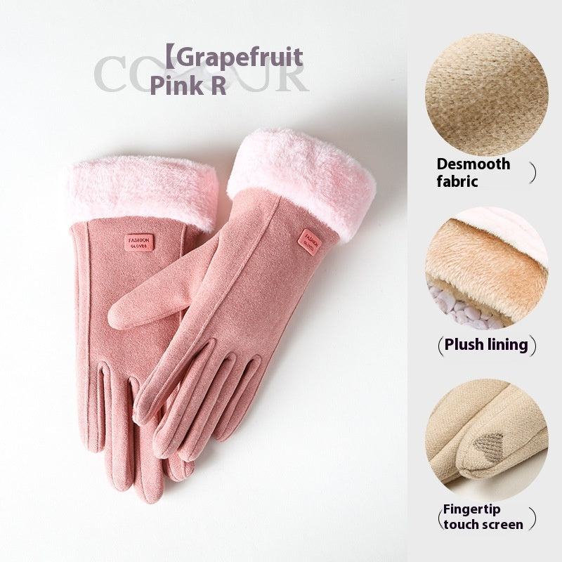 Women's Winter Riding Warm Velvet Padded Thickened Touch Screen Gloves