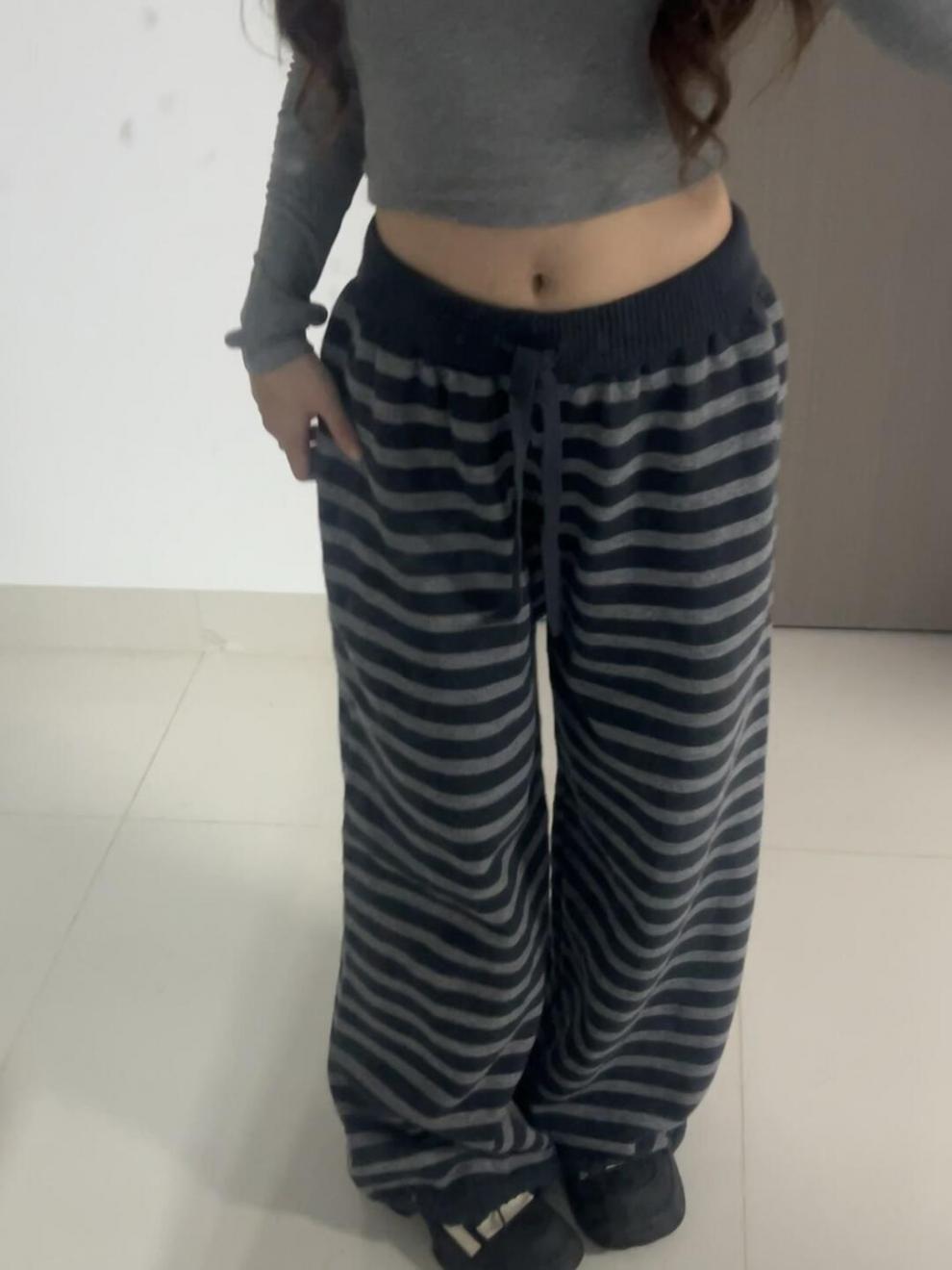 Drawstring Leisure Elastic Waist Pants On Both Sides