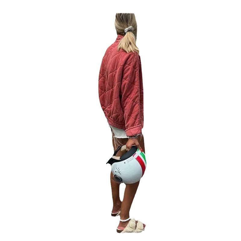European And American Diamond Lattice Stand-up Collar Cotton-padded Clothes