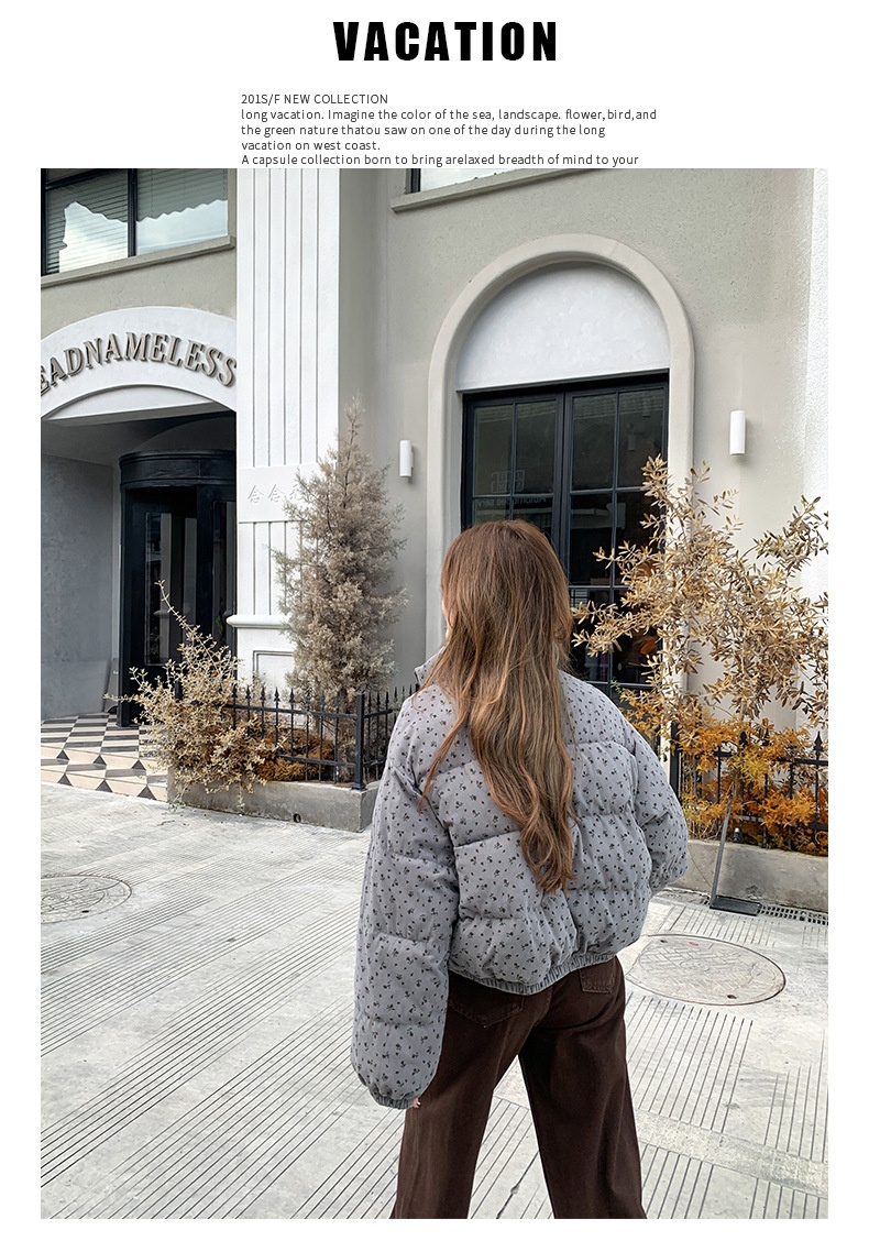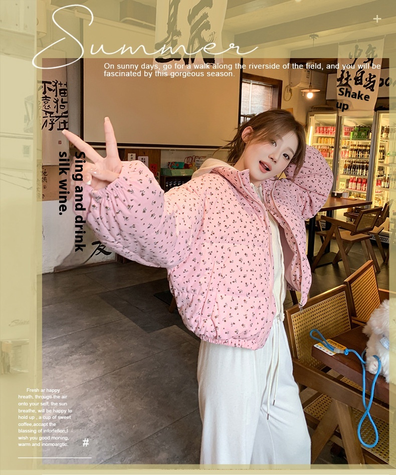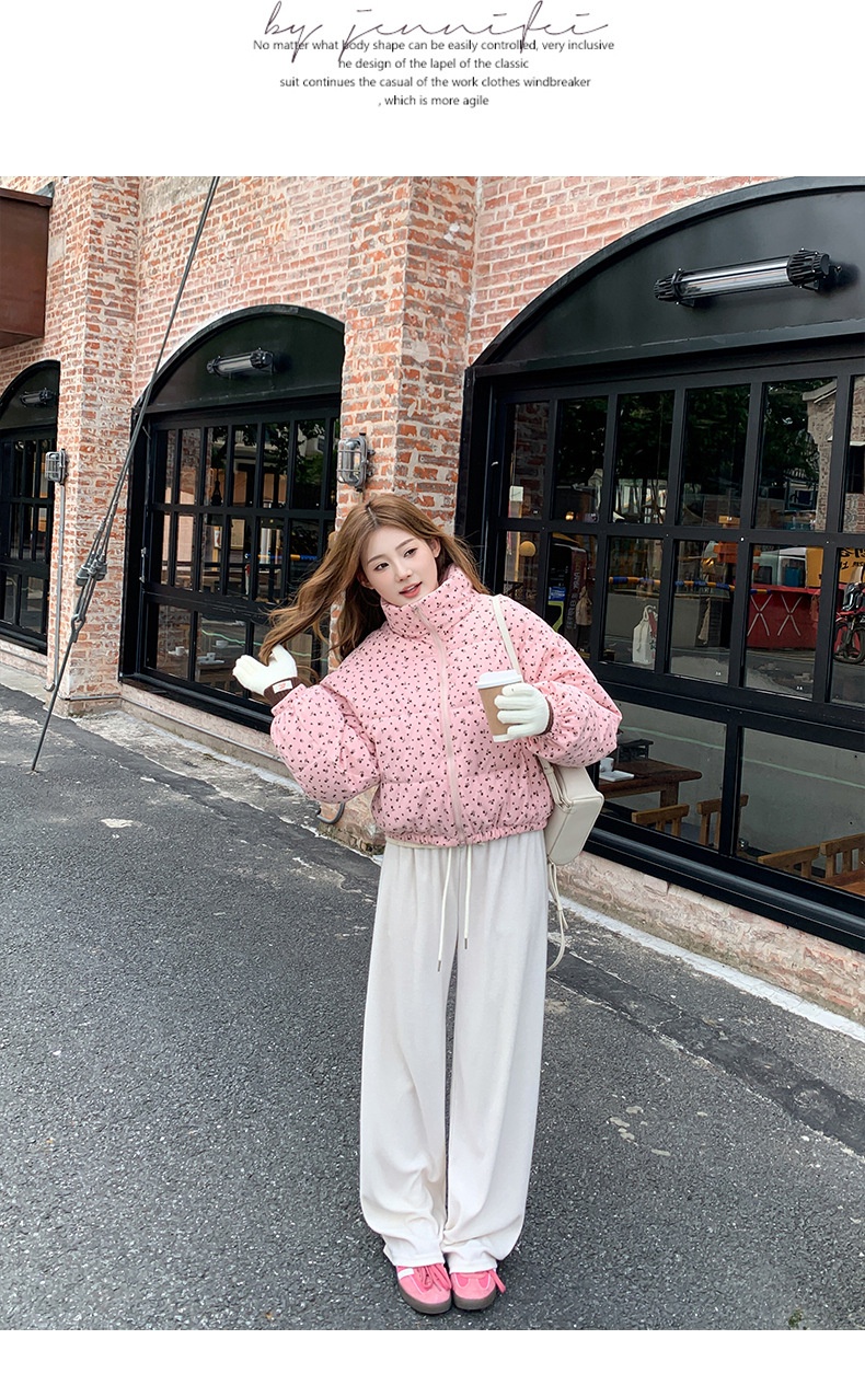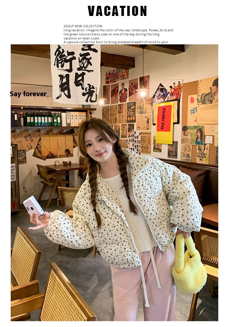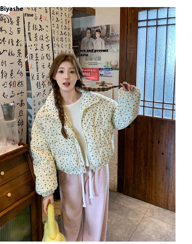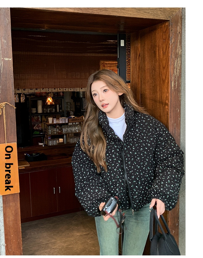 - Korean College Style Thickened Long Sleeve Cotton Coat Flower Cotton-padded Jacket