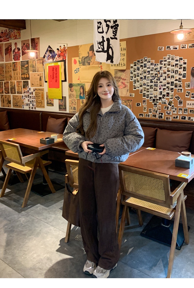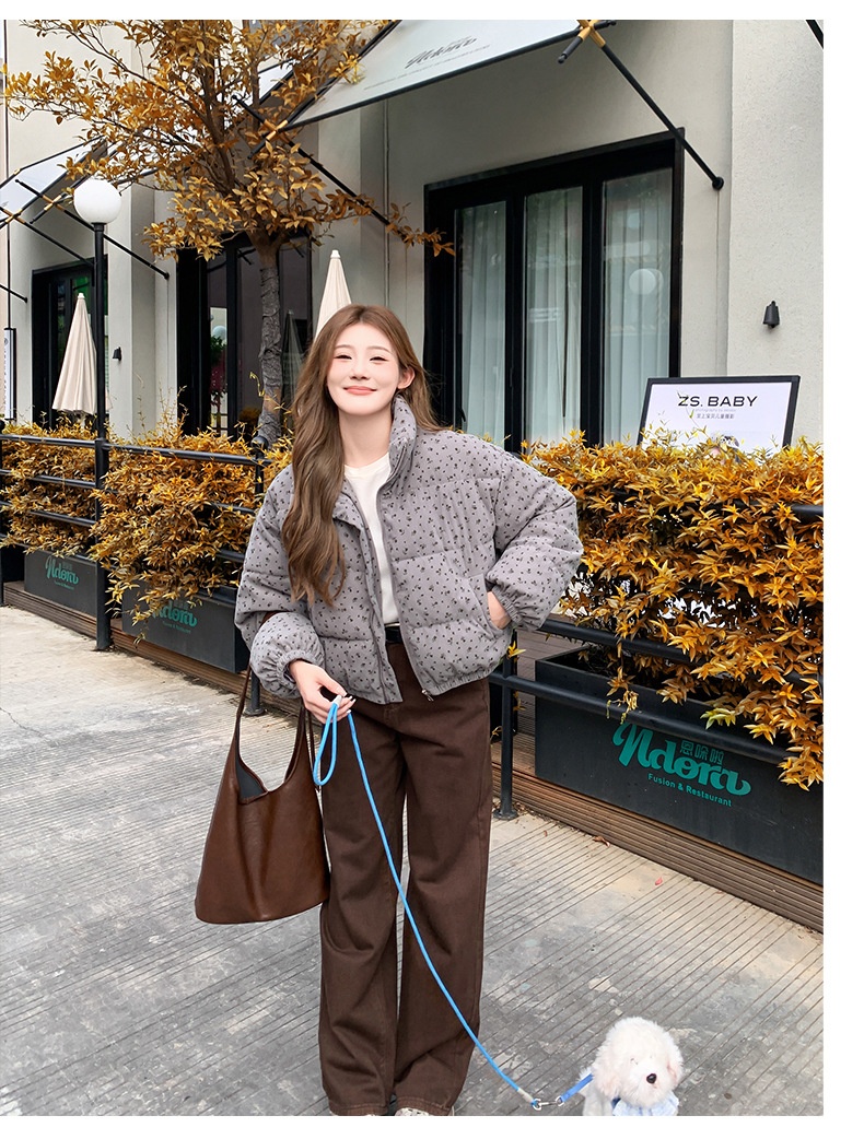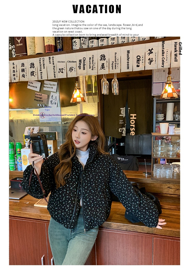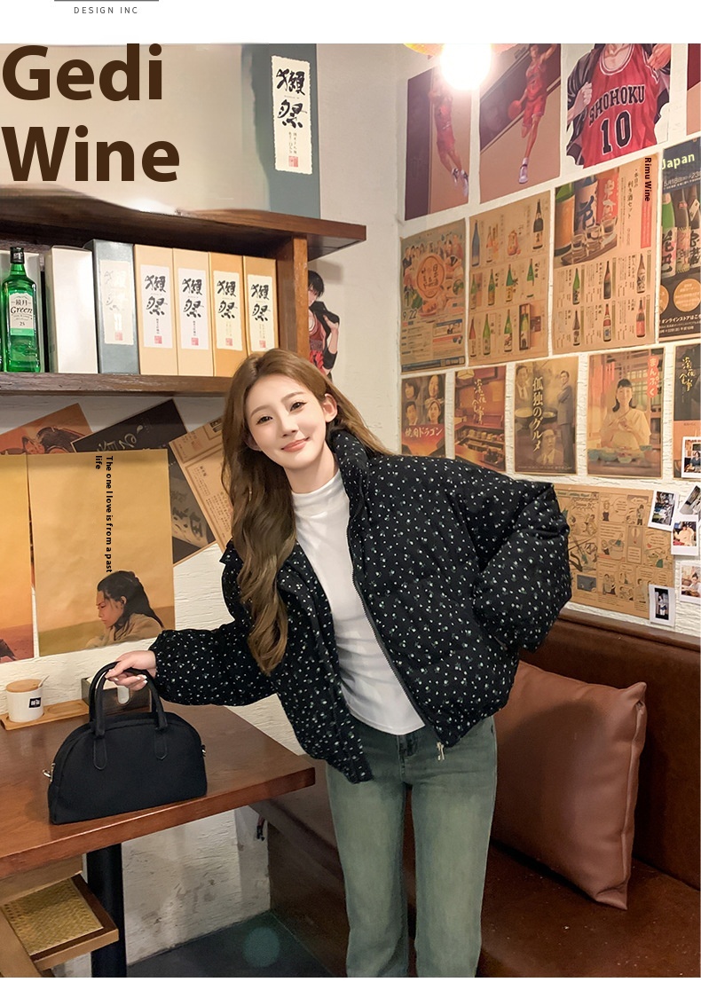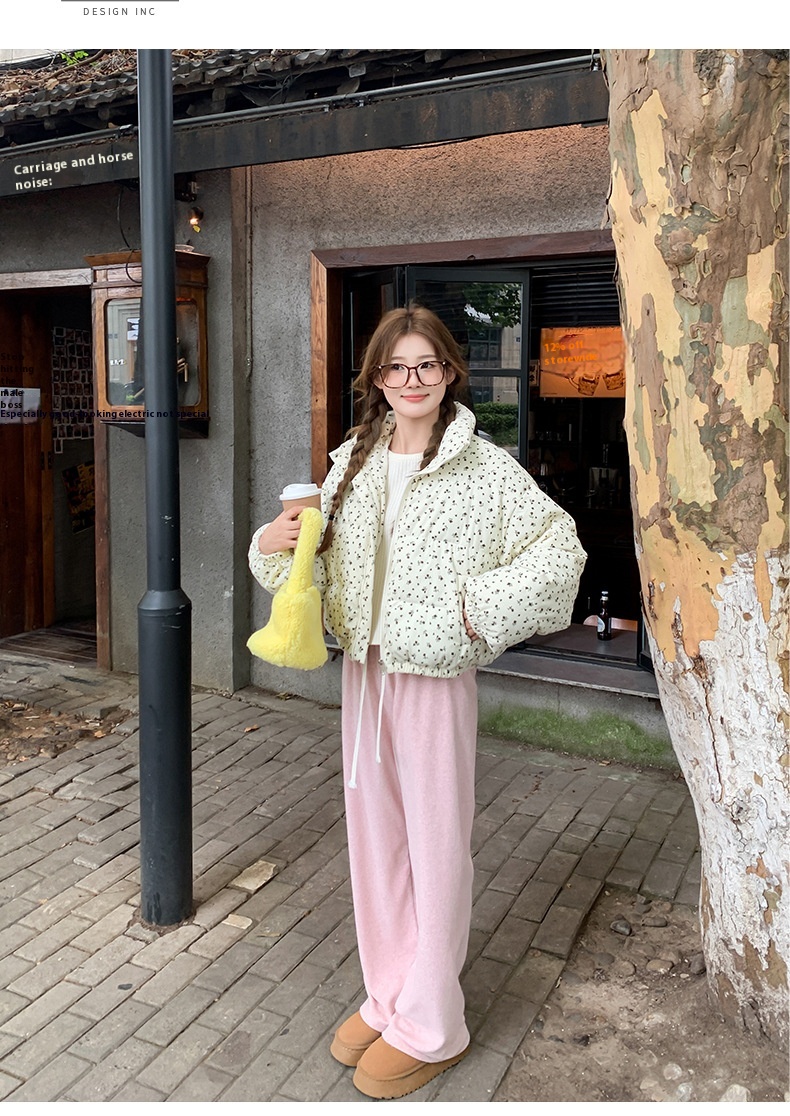 - Korean College Style Thickened Long Sleeve Cotton Coat Flower Cotton-padded Jacket