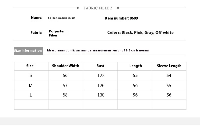 Women's Solid Color Long Sleeved Cotton Padded Jacket