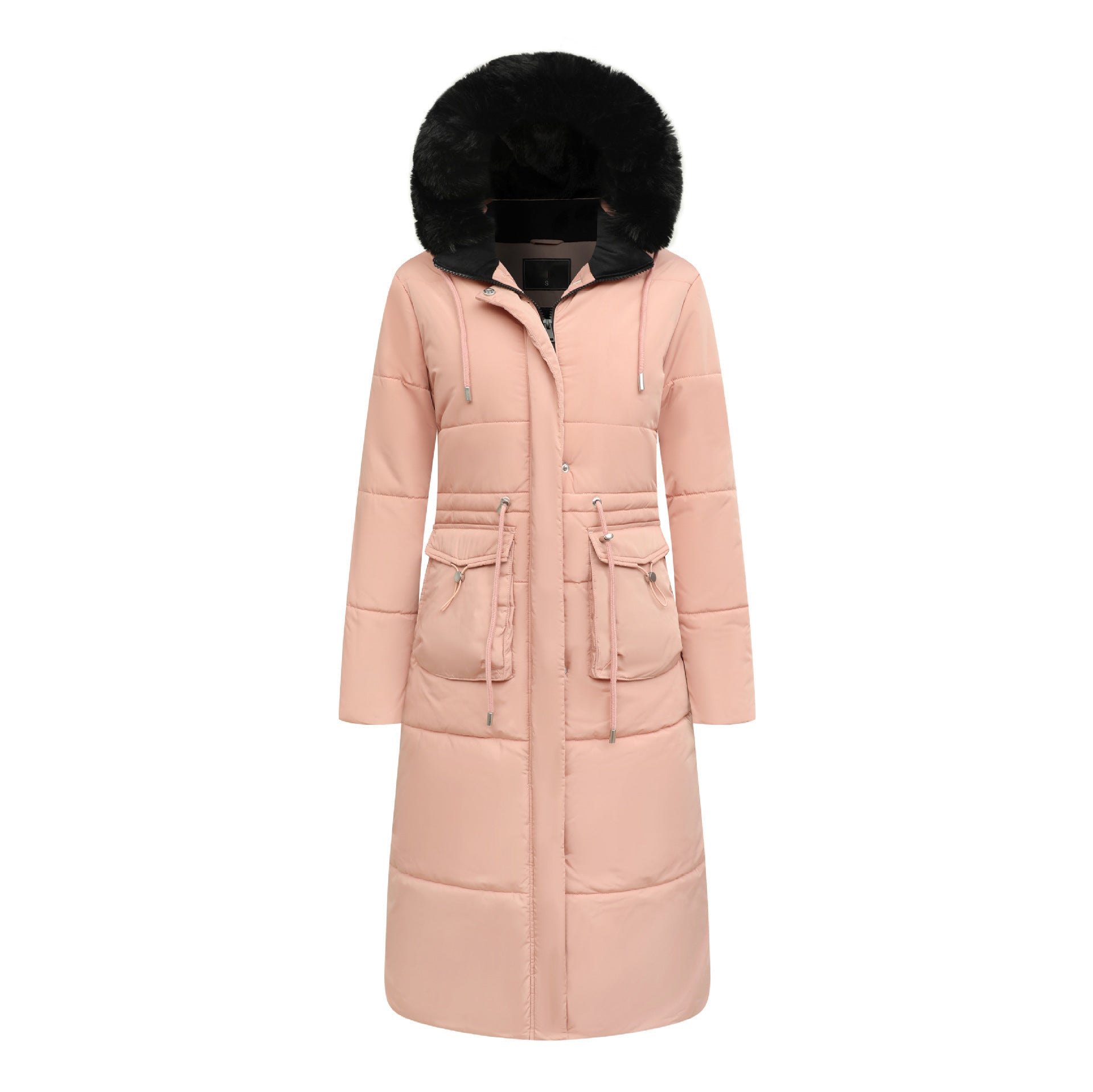 High Street Line Splicing Fur Collar Hood Cotton Coat Jacket