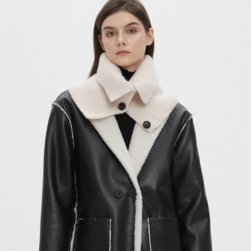 European And American Winter Korean Style Wool Solid Color Clip Flower Shaped Button Knitted Scarf