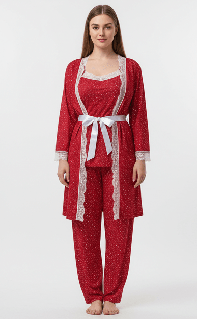 طقم بيجامة حريمي 3 قطع مع روب دانتيل