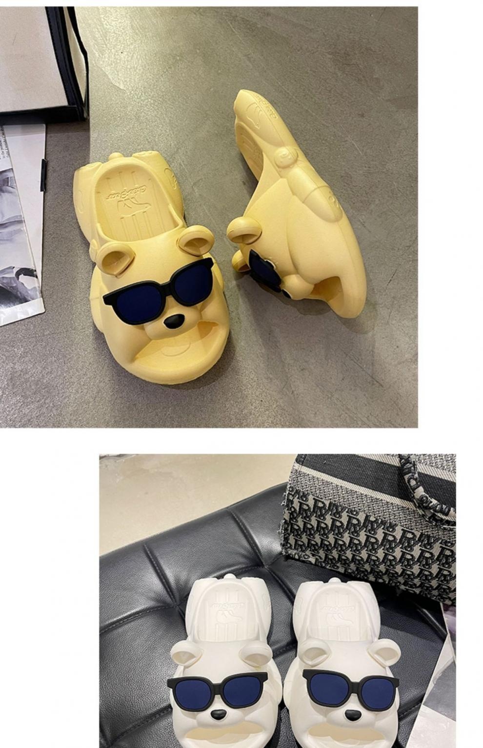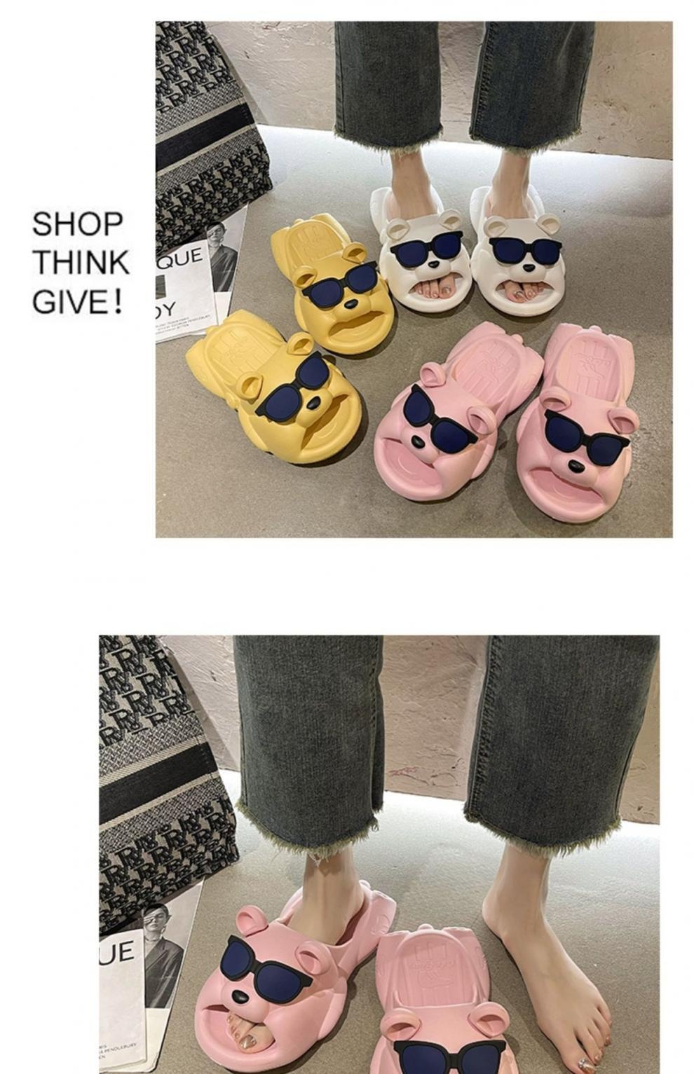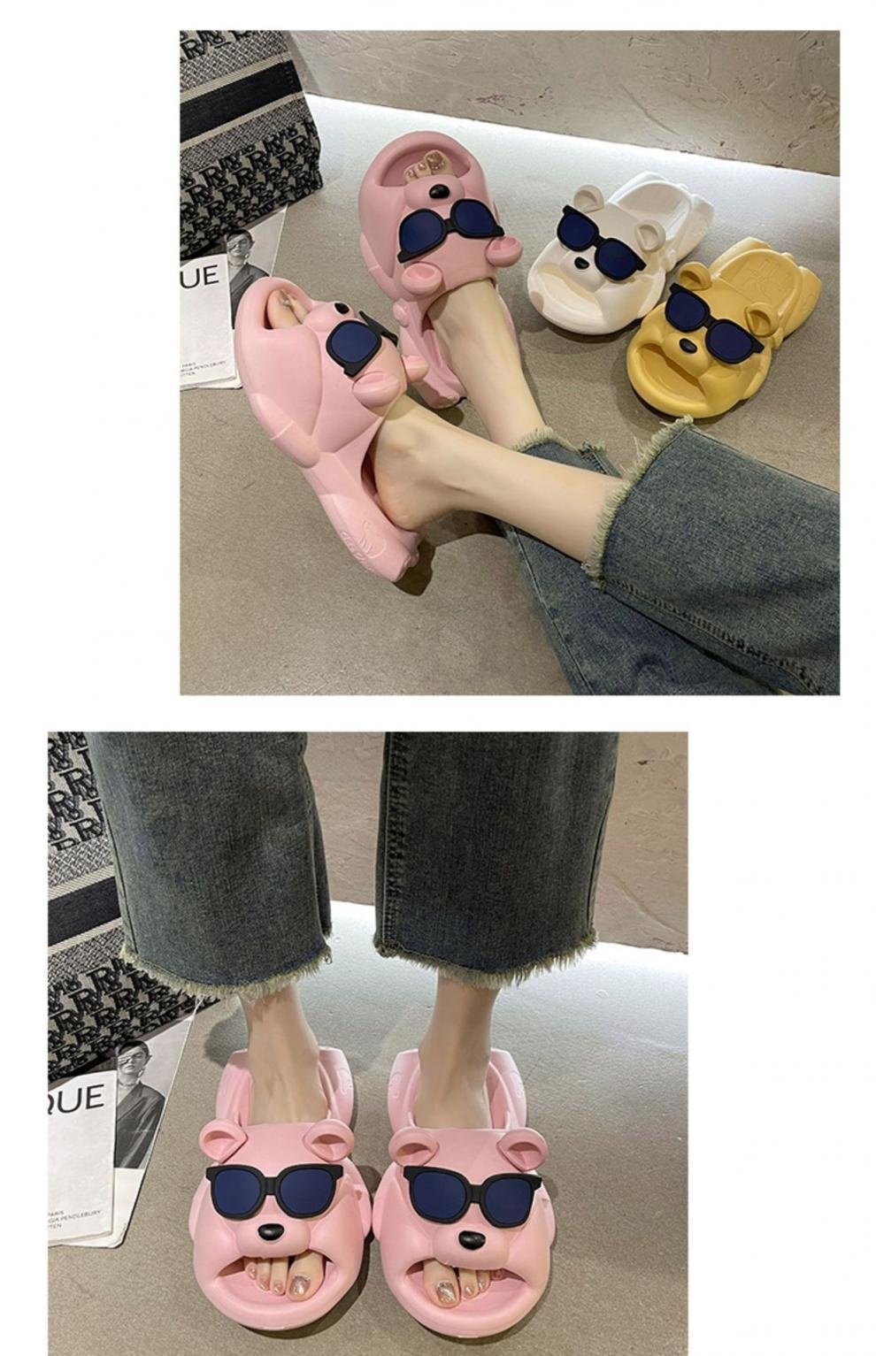 Cute Sunglasses Bear Slippers For Women, Summer Style