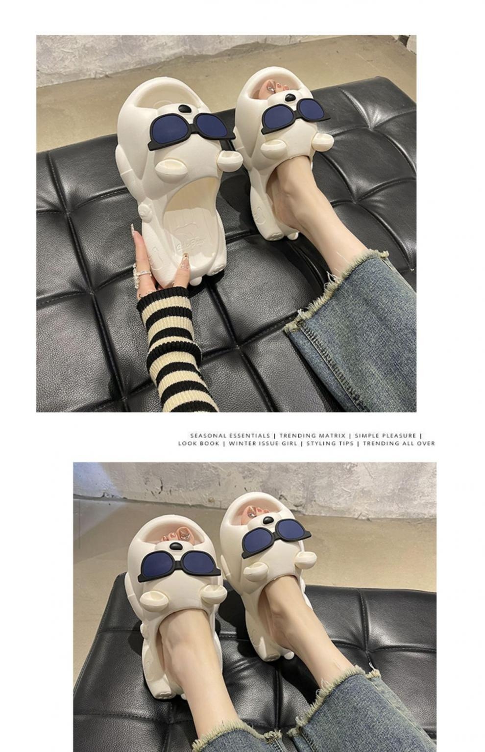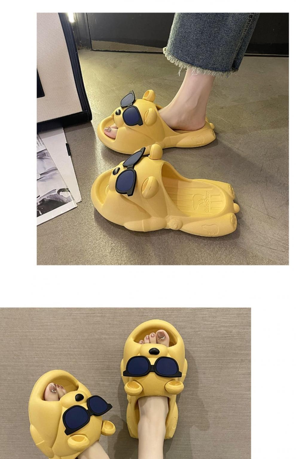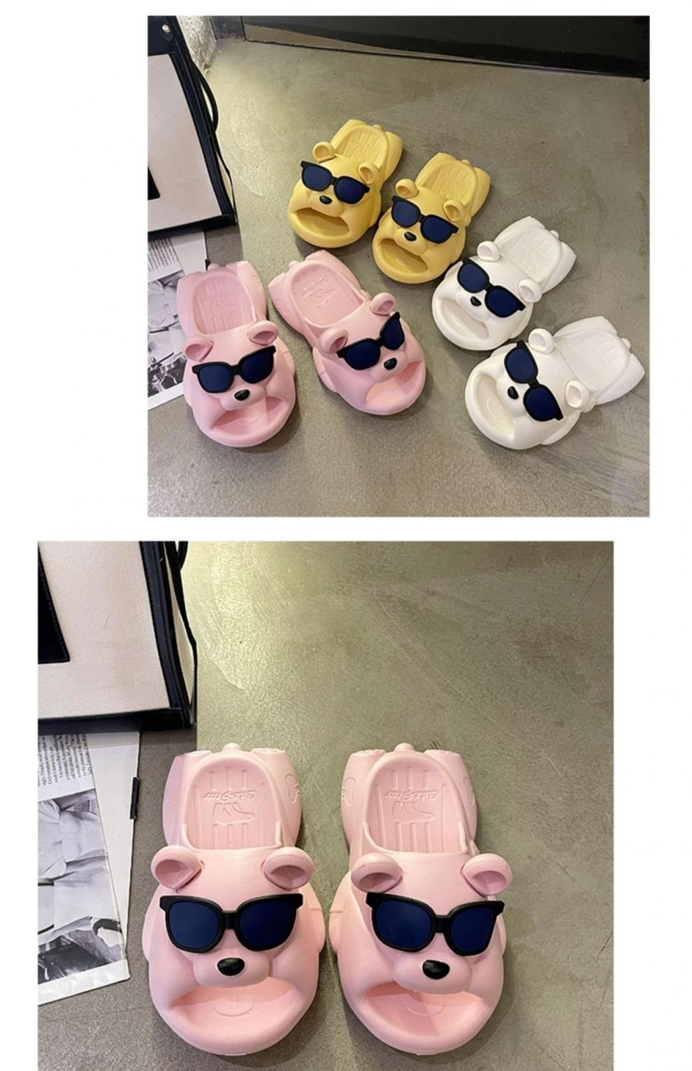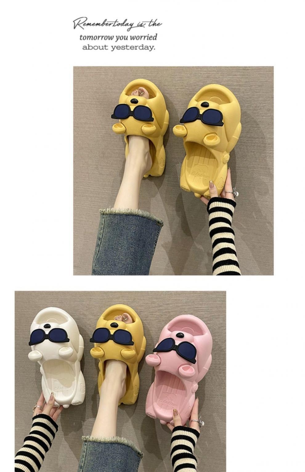 Cute Sunglasses Bear Slippers For Women, Summer Style