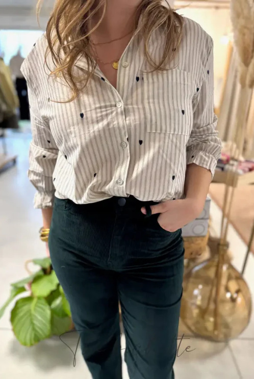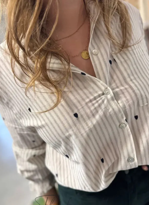 Casual Long-Sleeve Shirt With A Loving-Heart Print Top