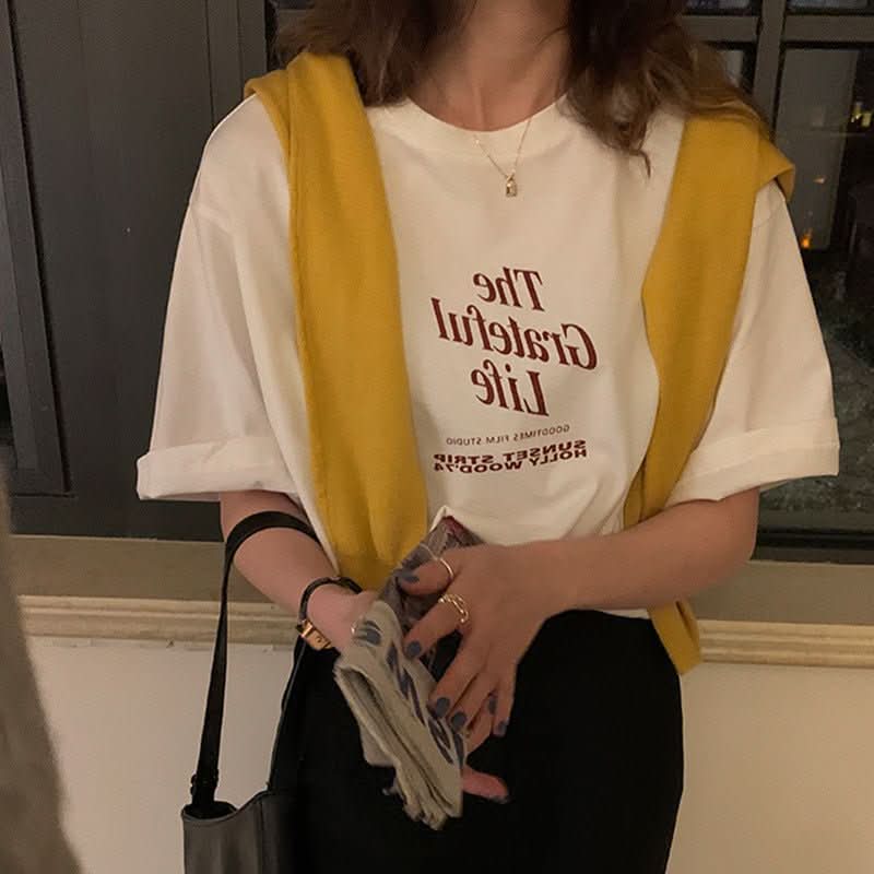 - Relaxed Laid-back Versatile Retro Short-sleeve T-shirt
