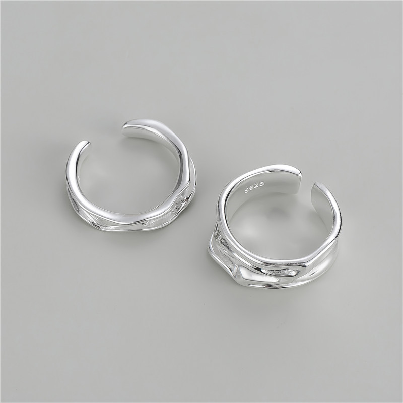 925 Sterling Silver Korean Style Irregular Stream Texture Ring, Textured Streamlined Design, INS Minimalist Fashion Statement Ring For Bloggers - Eshtree