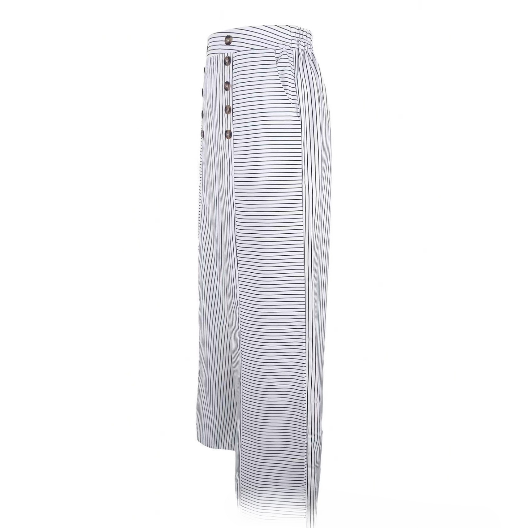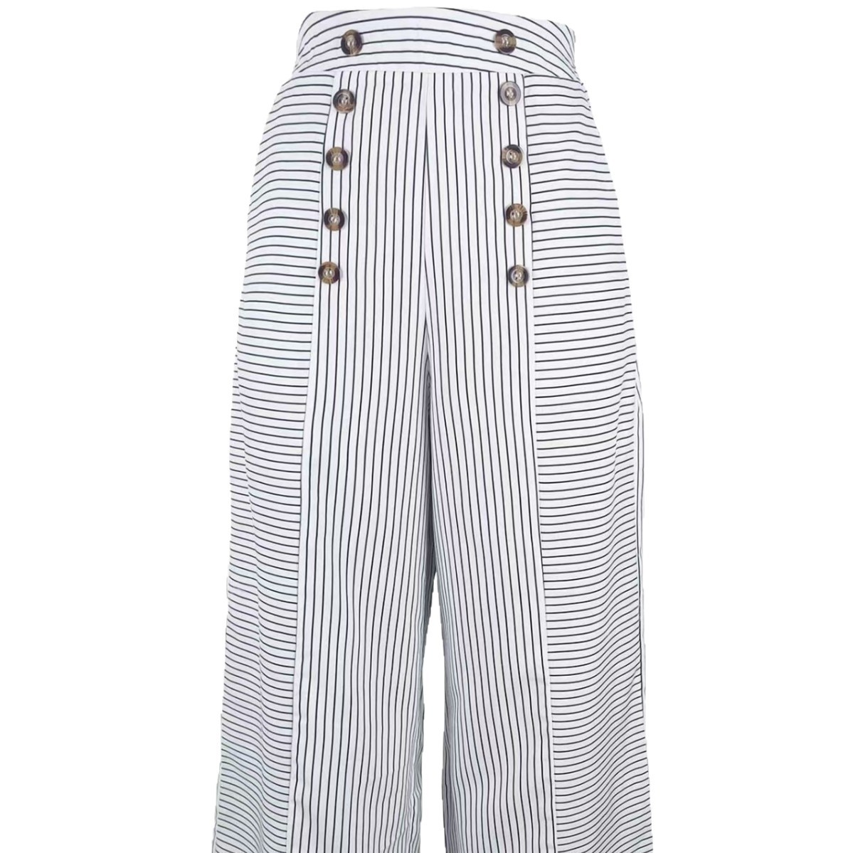Casual Striped Button - up Wide - leg Pants - Eshtree