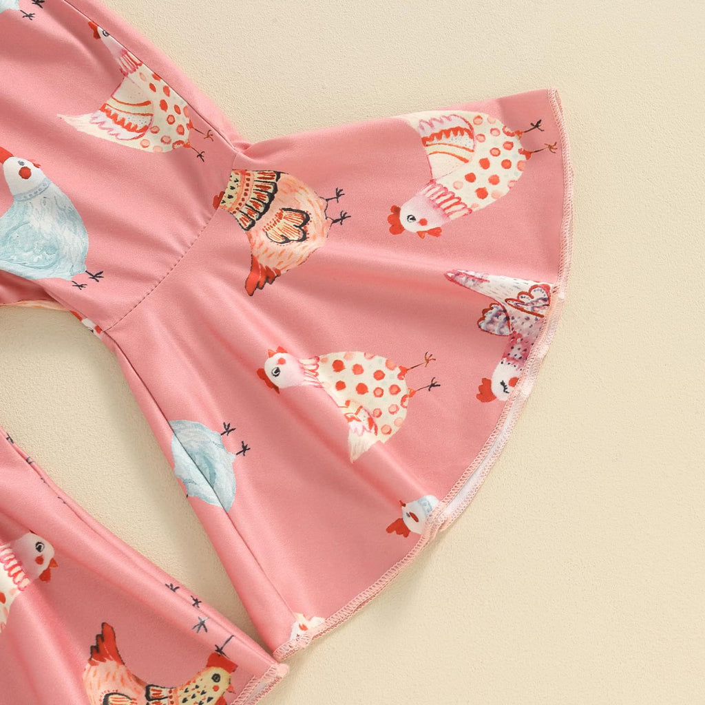 European And American Spring And Summer Girls' Bow Hair Accessories Short Sleeve Striped Color Matching Bell-bottom Pants 2-piece Set