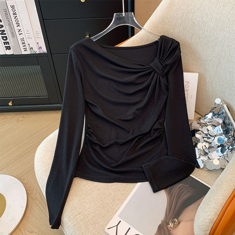 Long-sleeve Off-shoulder Base Top With A Bow Knot