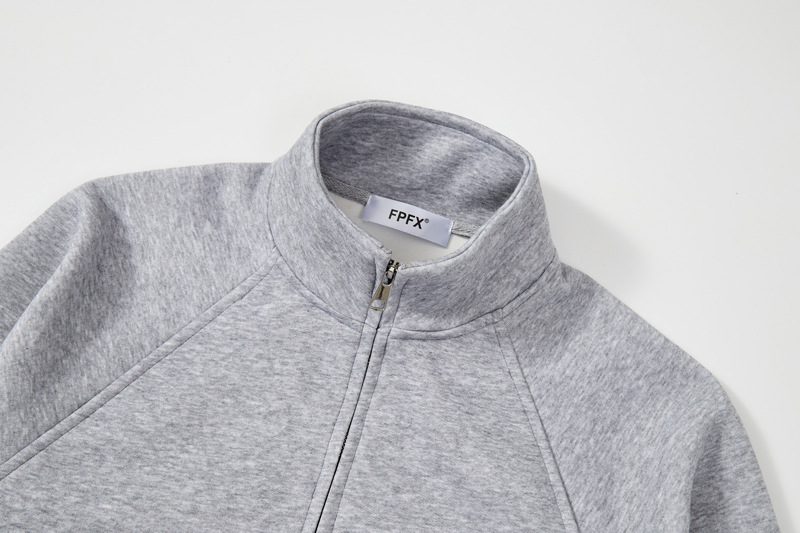 Men's American-style Stand Collar Gray With Zipper Sweatshirt Jacket