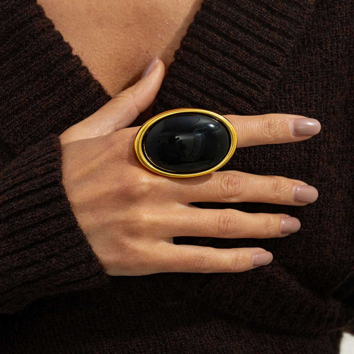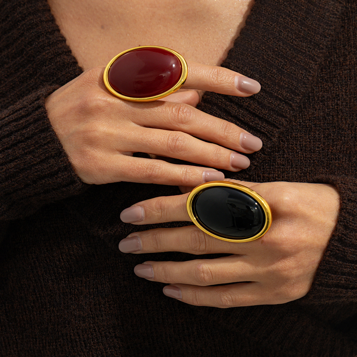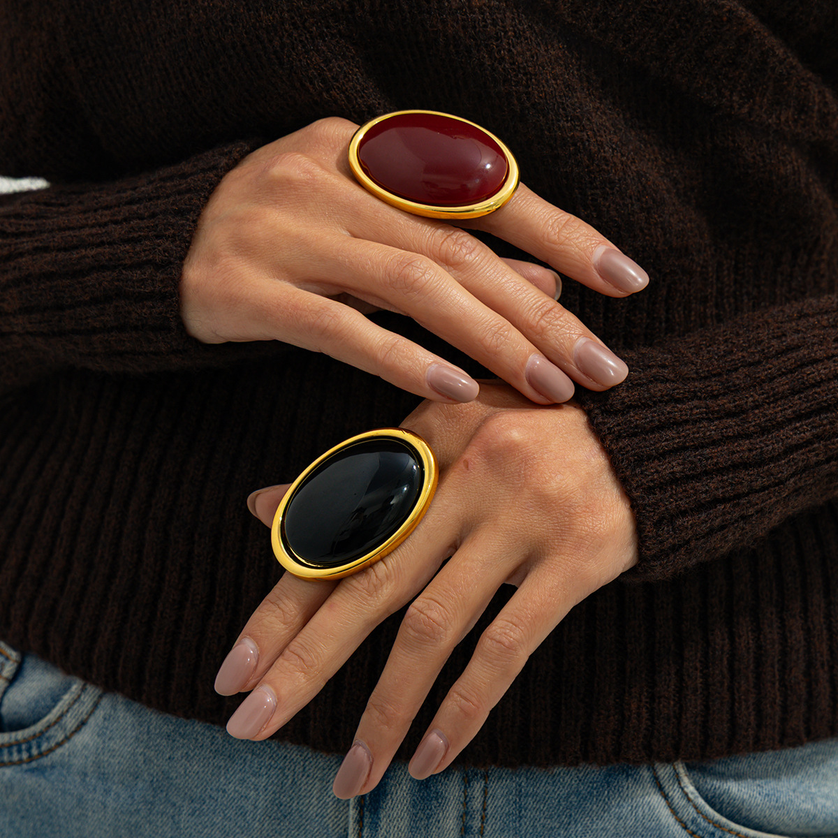 New Exaggerated Metal Vintage Inlaid Gem Ring, Personalized Sweet & Cool Premium Adjustable Open Ring