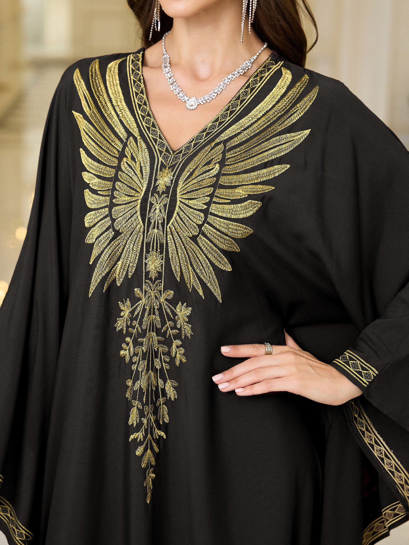 Rayon Gold Thread Embroidered Beach Cover-up Loose Robe