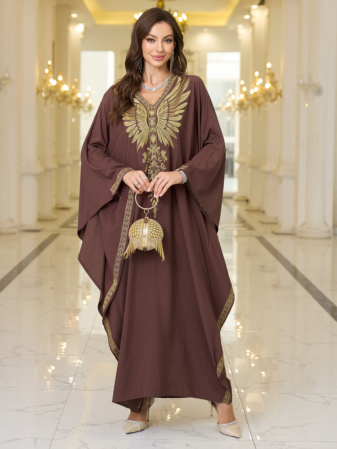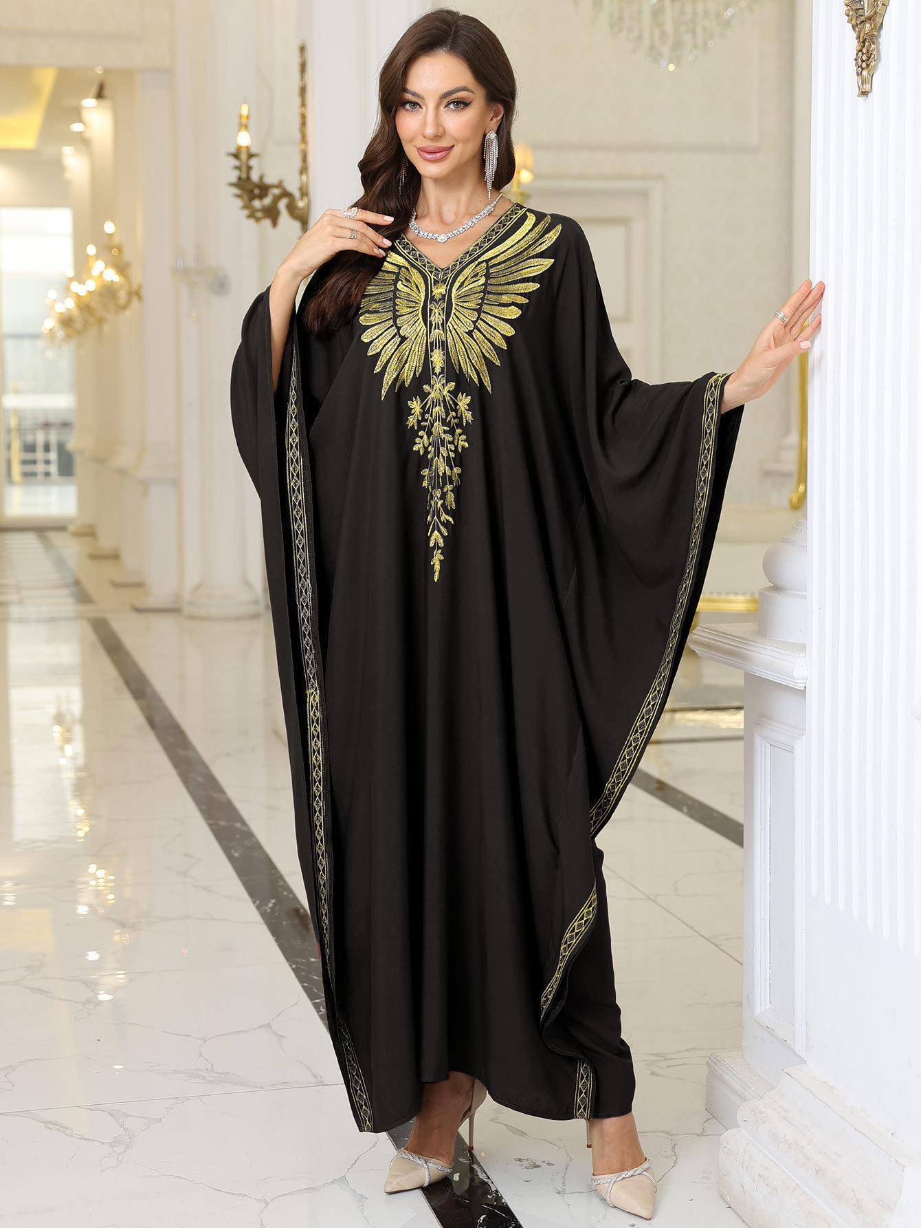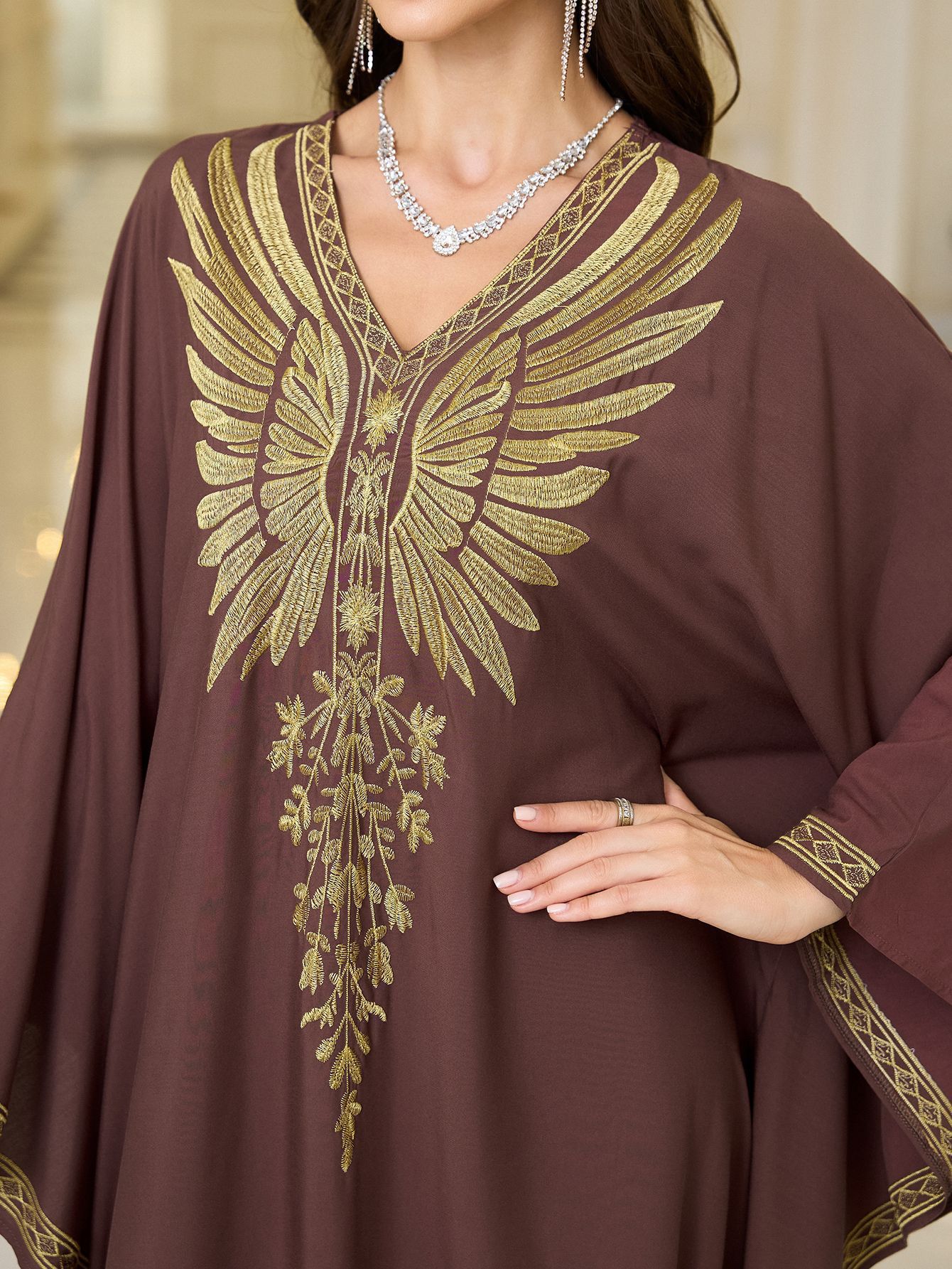 Rayon Gold Thread Embroidered Beach Cover - up Loose Robe - Eshtree