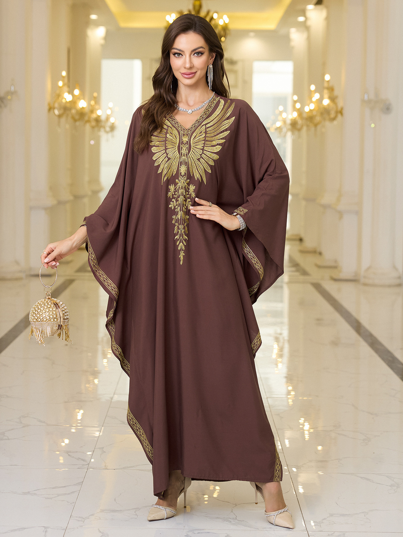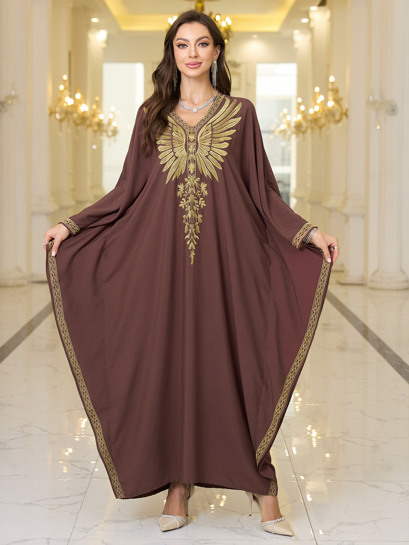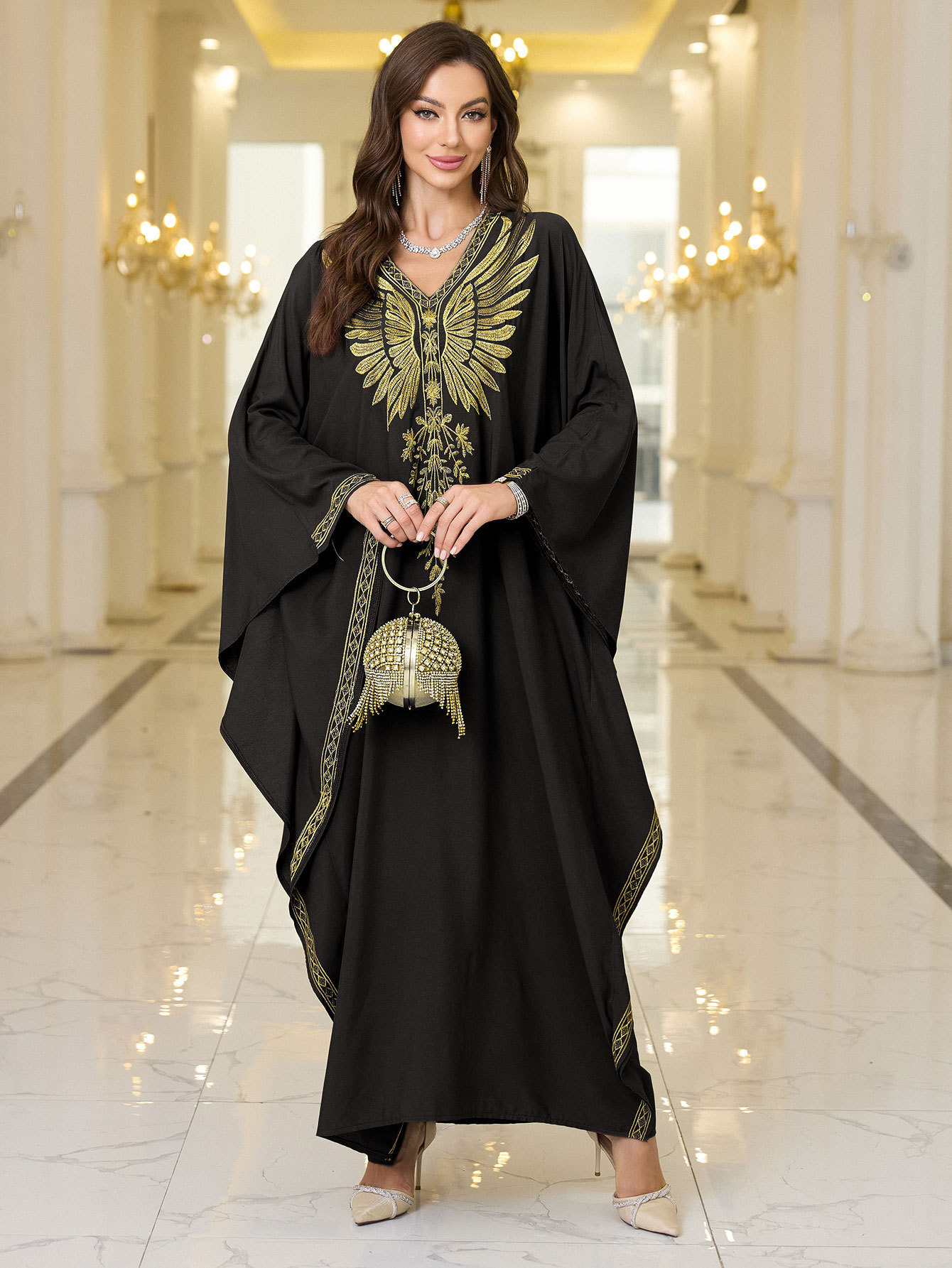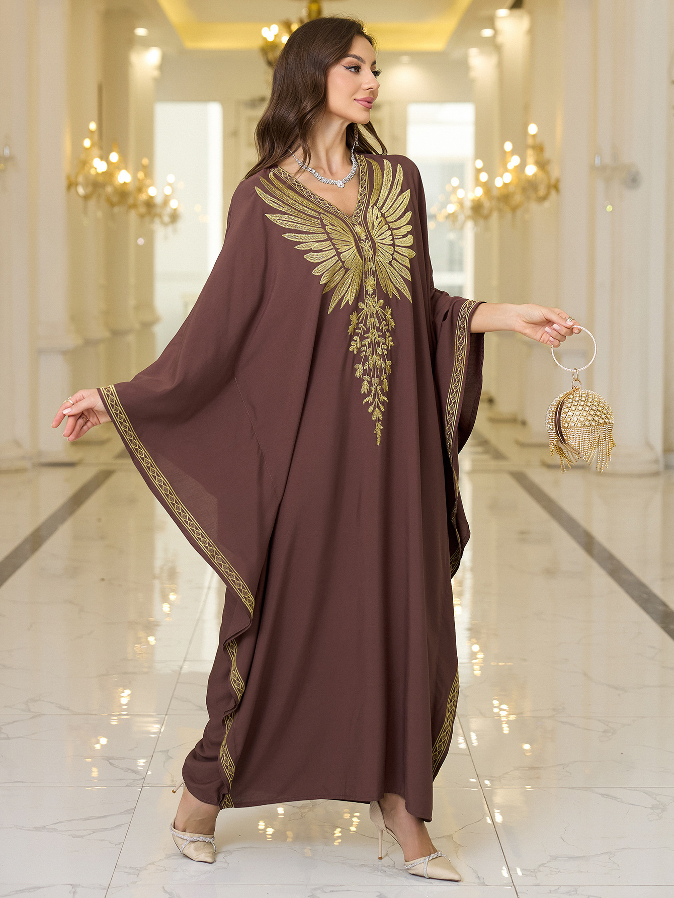Rayon Gold Thread Embroidered Beach Cover - up Loose Robe - Eshtree