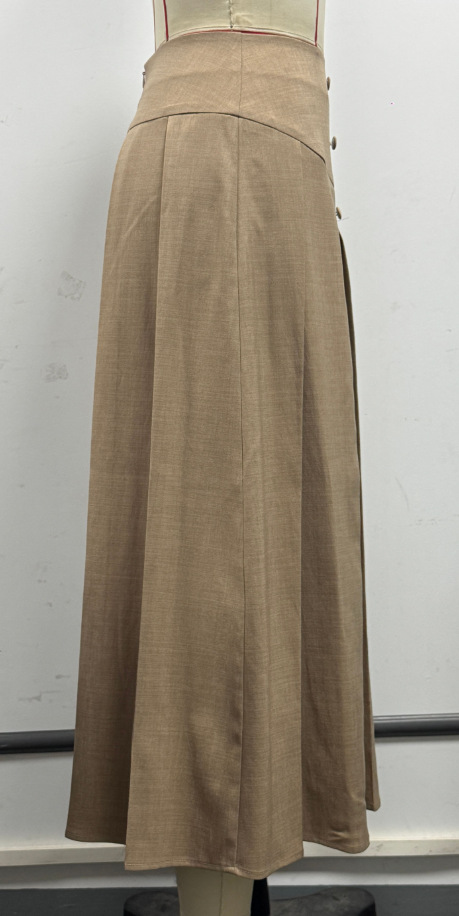 Trendy elements: Solid color, zipper, buttons, pleats
