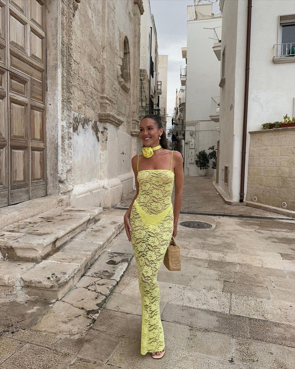 Sling Lace See-through Slim-fit Sheath Dress