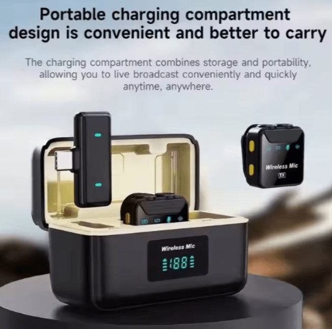 Capture crystal-clear audio anywhere with the SX23 - Wireless Microphone, featuring real-time noise reduction, plug-and-play setup, and an intelligent LED display charging case. Perfect for vloggers, interviewers, podcasters, and content creators, this mic set ensures studio-quality sound on your smartphone, tablet, or camera — no cables, no hassle.