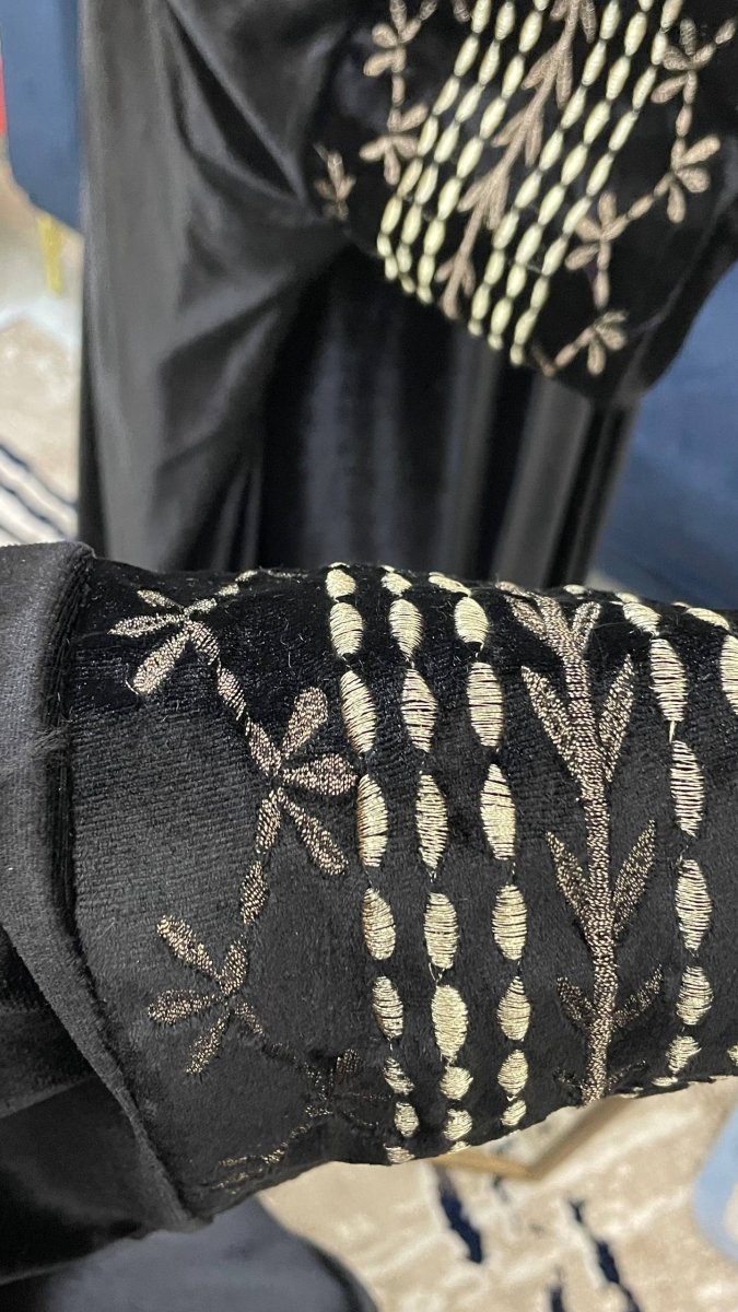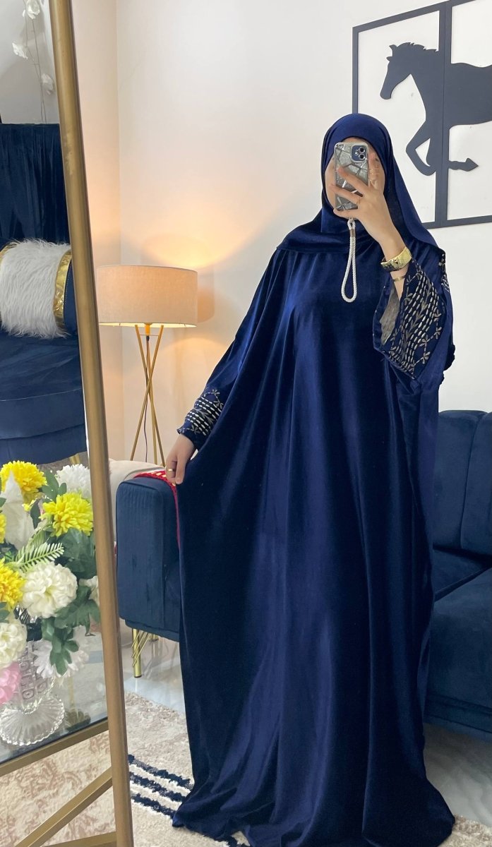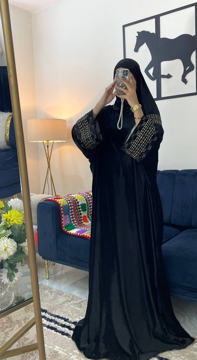 إسدال بخامة قطيفة فرنساوي تقيلة وناعمة، بيدّي إحساس بالدفا والراحة مع شكل شيك ومرتب. قصّة واسعة تناسب كل الأجسام وتوفر ستر كامل، عملي جدًا للبس اليومي ولساعات طويلة بدون إحساس بثقل.